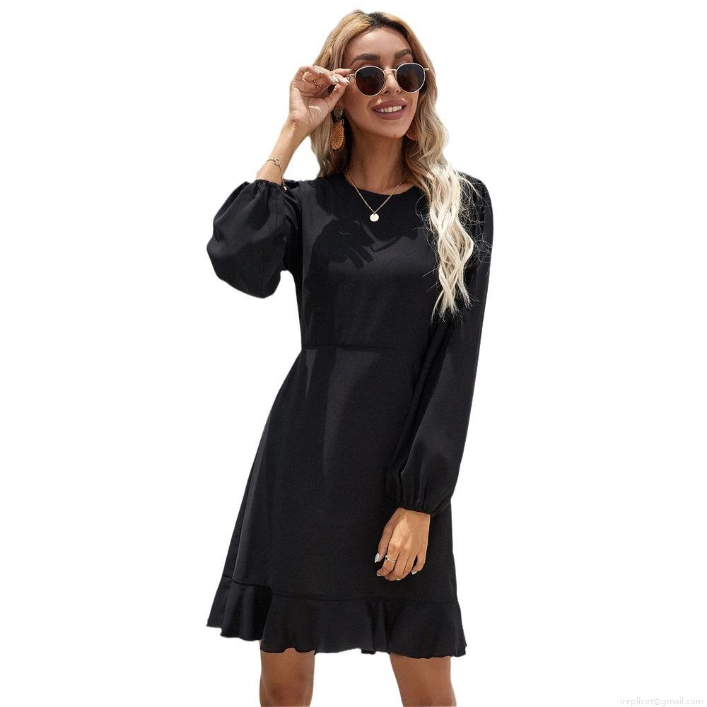 • Women's Sexy Backless Hollow Out Long Sleeve Mini Dress Solid Color Ruffle Hem Single Breasted Slim Fit A-Line Party Clubwear Dress