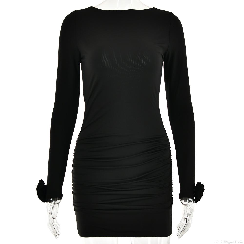 • Women's Sexy Backless Mini Dress Ruched Bodycon Long Sleeve Round Neck Polyester Spandex Party Clubwear Evening Dress With 3D Flower Cuffs