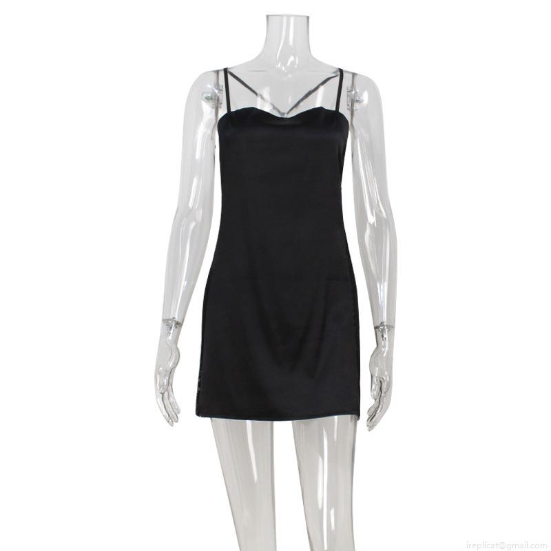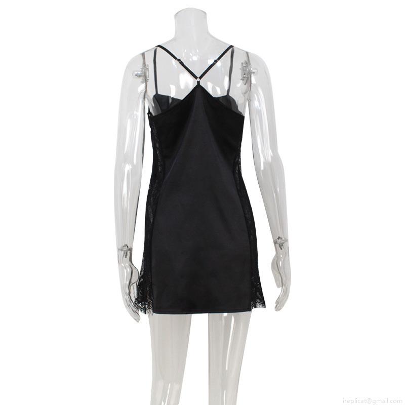 • Women's Sexy Backless Satin Mini Dress With Mesh Lace Patchwork Sleeveless Spaghetti Strap Slip Nightgown Clubwear Party Club Dress Black