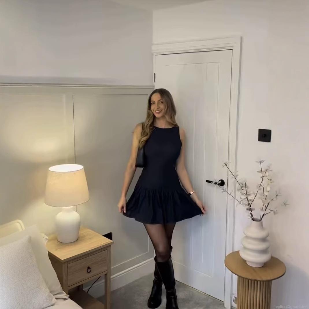 • Women's Sexy Backless Sleeveless Mini Dress Summer Party Dating Slim Fit Polyester Denim Texture Solid Color Pleated Bubble Hem Short Dress for Women Girls