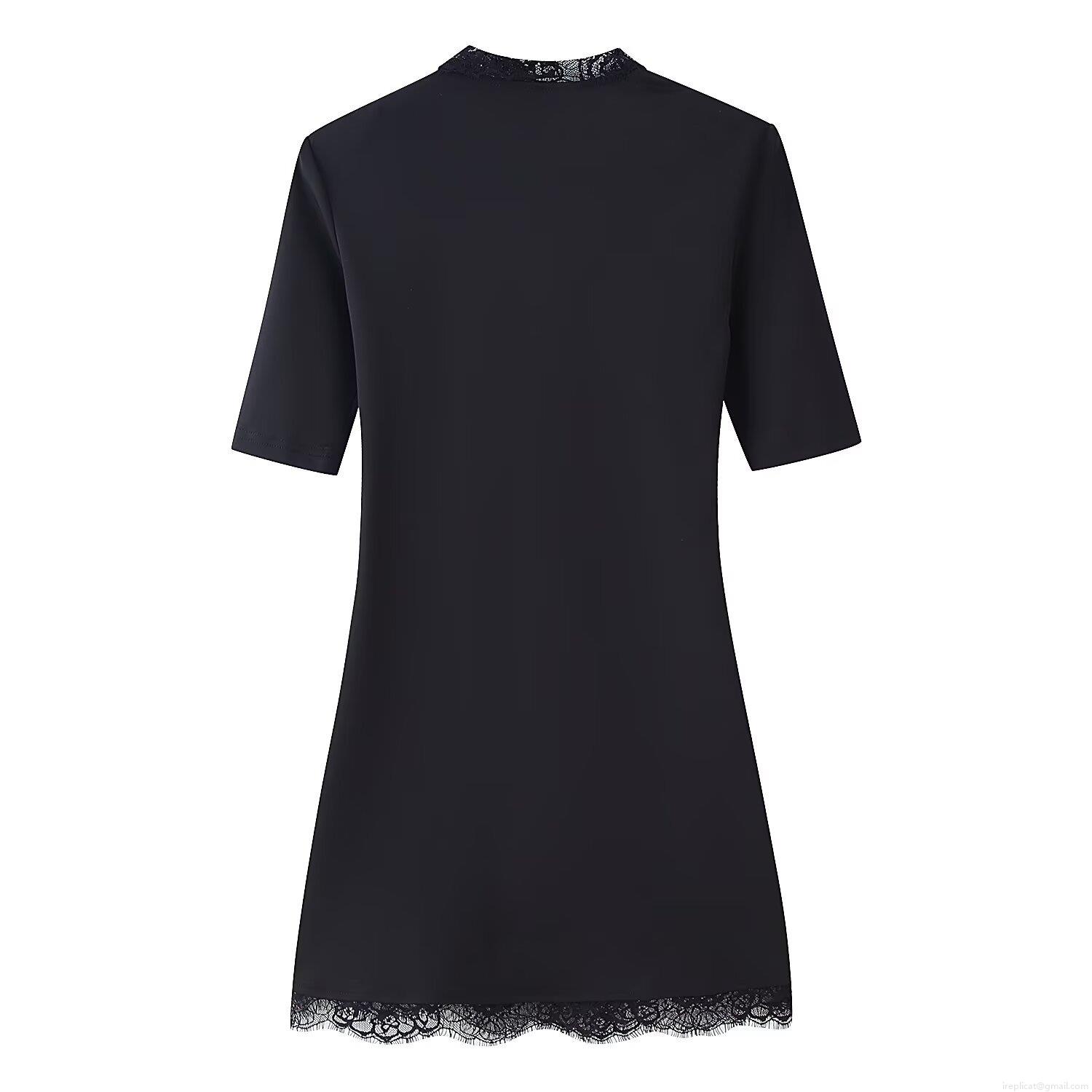 • Women's Sexy Black Lace Patchwork Hollow Out Bodycon Mini Dress High Neck Short Sleeve Tight Polyester Lace Clubwear Party Dress