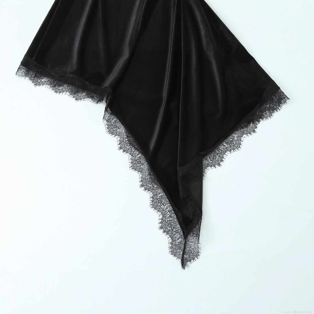 • Women's Sexy Black Velvet Cami Dress Asymmetric Lace Trim V Neck Mini Dress Elegant Socialite Party Club Night Out Evening Bodycon Dress