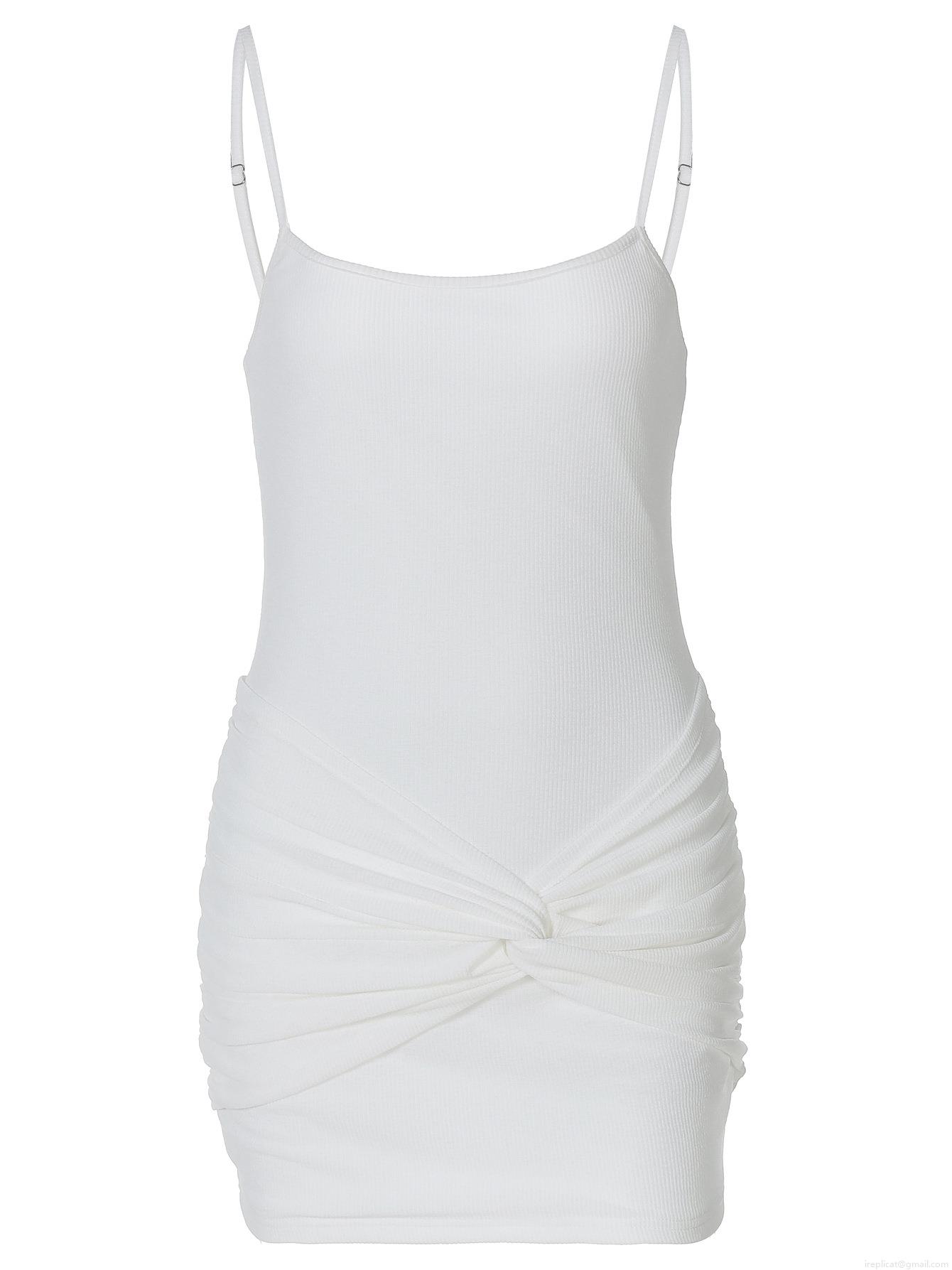 • Women's Sexy Bodycon Cami Mini Dress Twist Knot Front Ruched Sleeveless U Neck Slim Fit Polyester Spandex Short Dress for Summer Vacation Party Clubwear