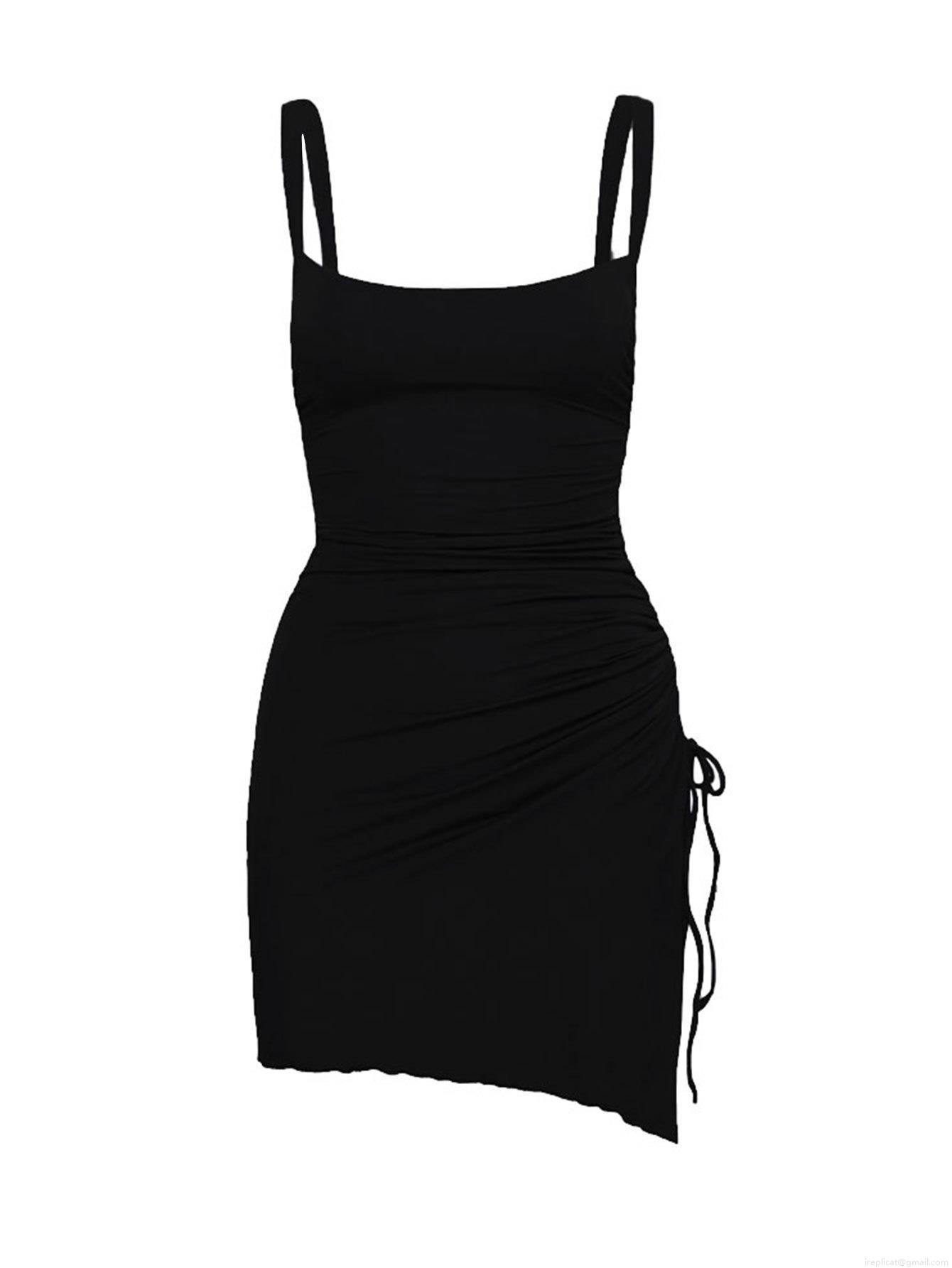 • Women's Sexy Bodycon Mini Dress Polyester Spandex Drawstring Side Ruched Slit Spaghetti Strap Square Neck Sleeveless Summer Party Clubwear Dress