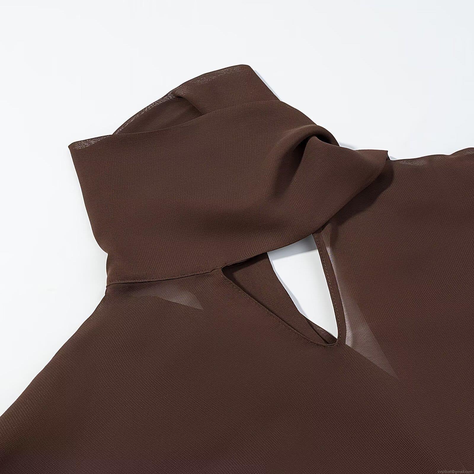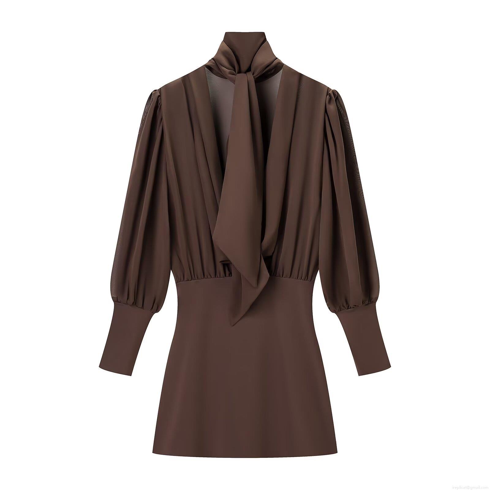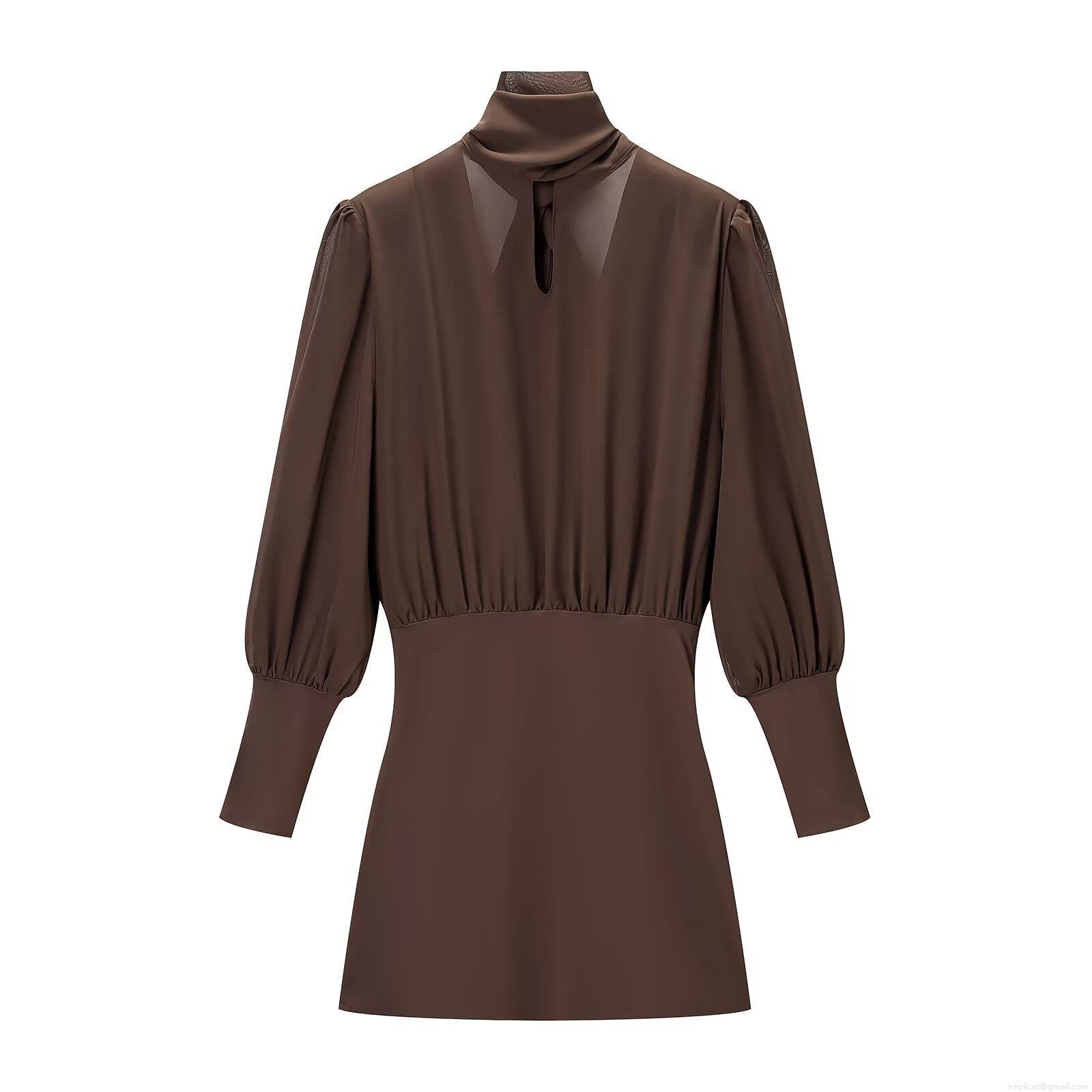 • Women's Sexy Coffee Patchwork Mini Dress Elegant High Neck Keyhole Long Puff Sleeve Slim Fit Ruched Bodycon Dress For Party Club Night Out