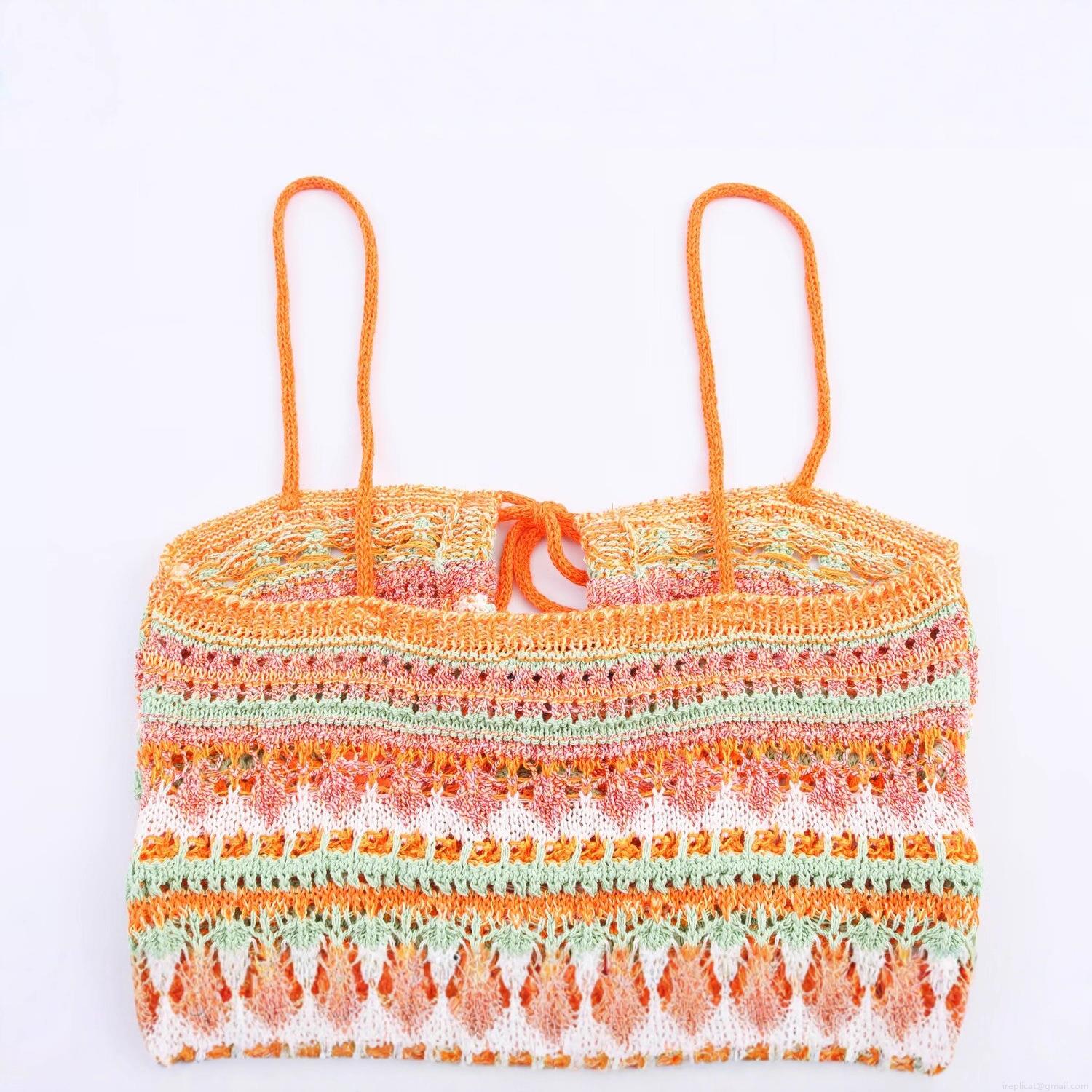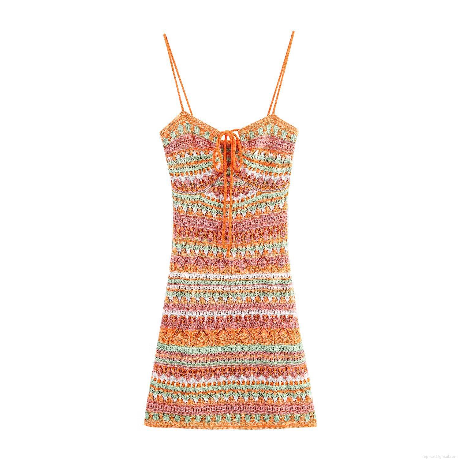 • Women's Sexy Colorful Crochet Knit Mini Camisole Dress Sleeveless Hollow Out Bohemian Bodycon Striped Spliced Beach Vacation Party Sundress