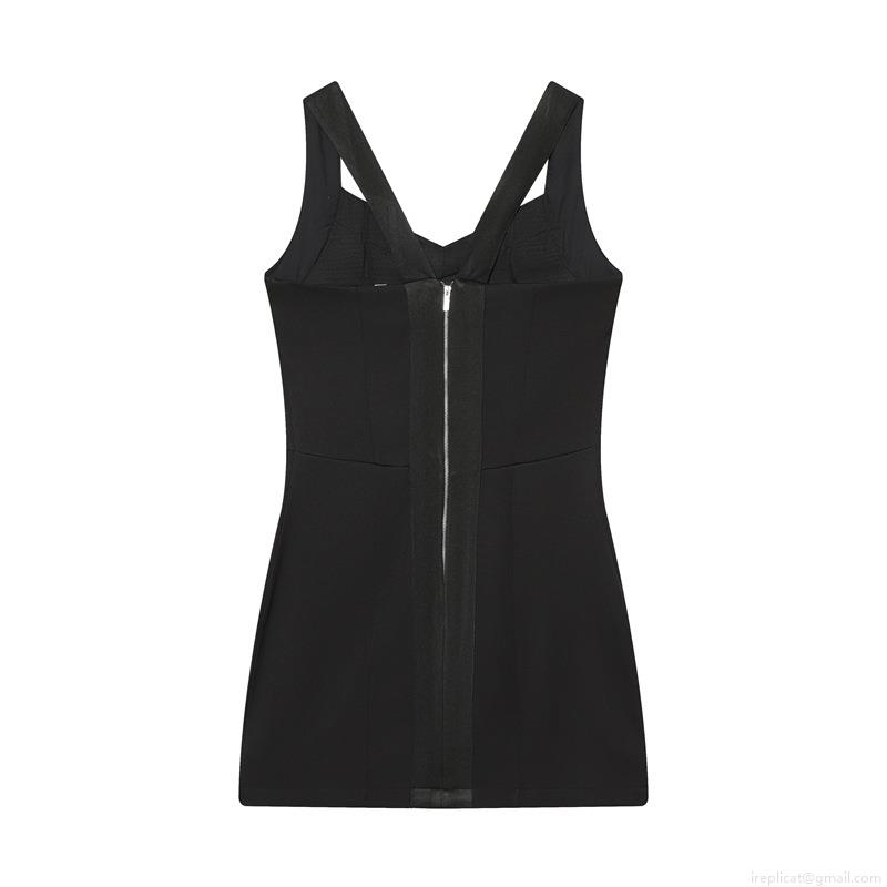 Solid Color, Metal Zipper, Deep V-neck, Back Cross Strap, Bandage Material