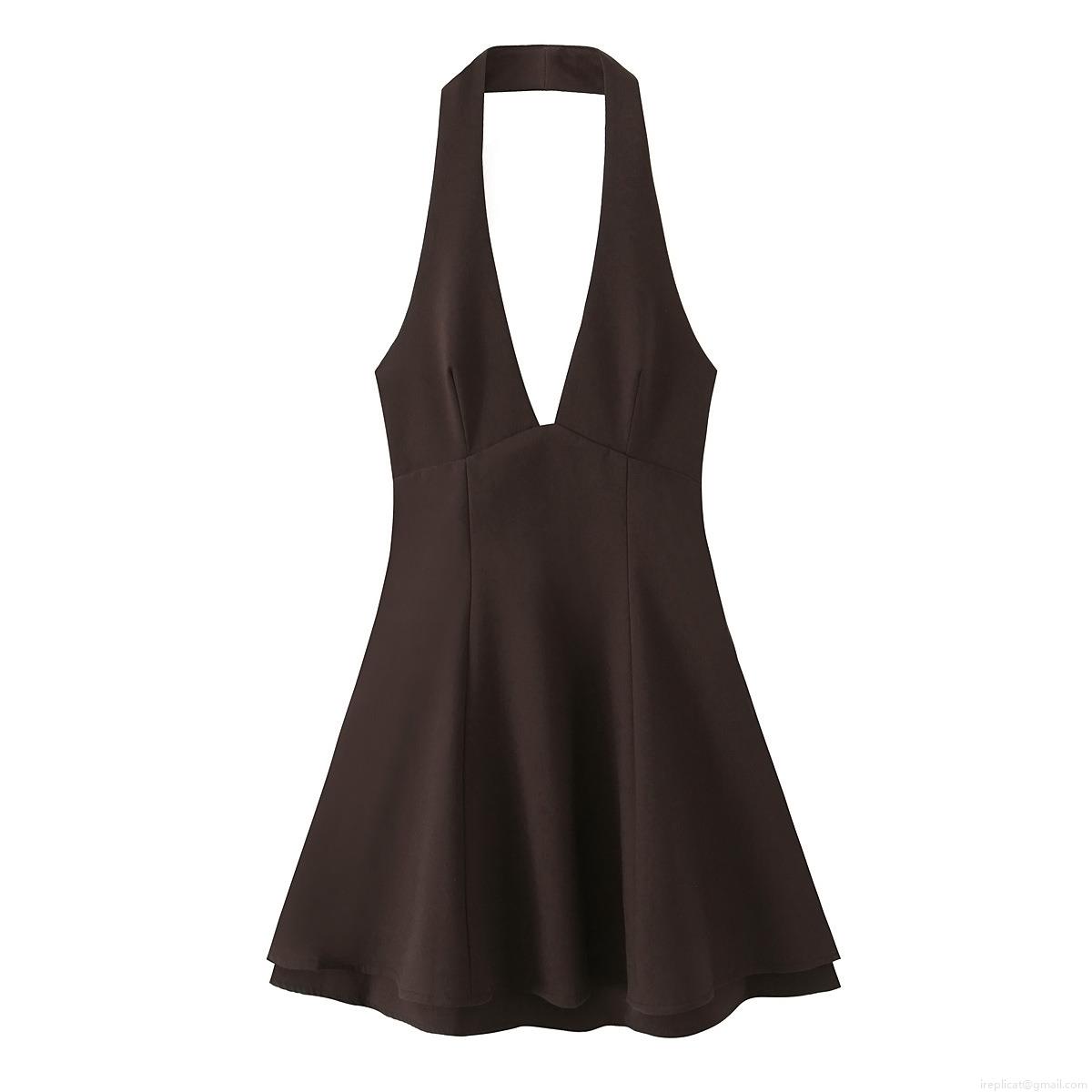 • Women's Sexy Deep V Neck Halter Mini Dress Sleeveless A-Line Backless Short Dress For Summer Vacation Elegant Solid Color Polyester Sundress