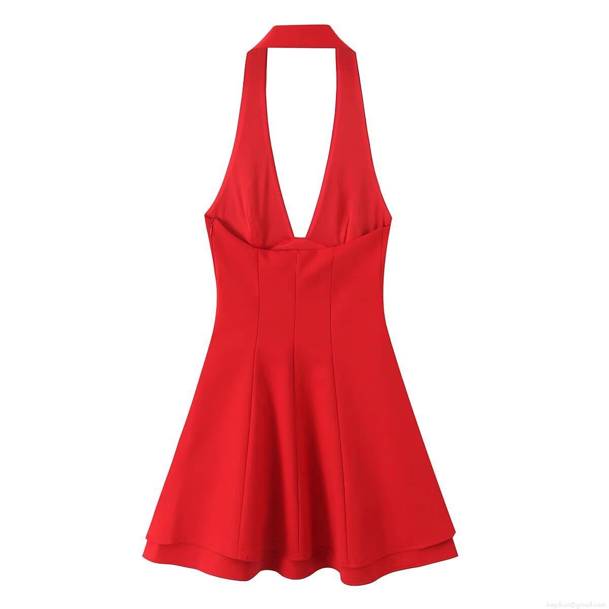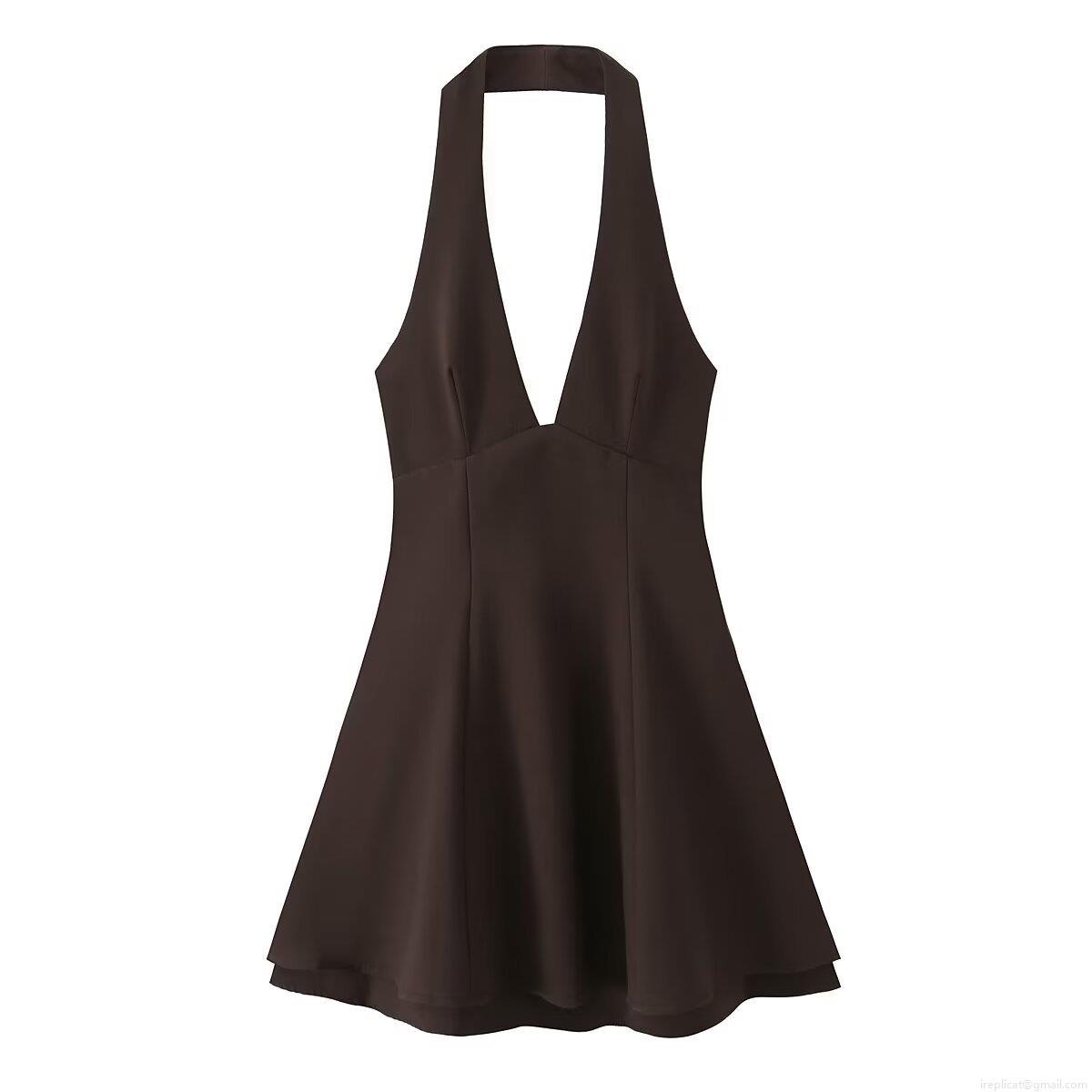 • Women's Sexy Deep V-Neck Halter Backless Mini Dress Polyester Solid Color Sleeveless Party Club Dress For Women Streetwear