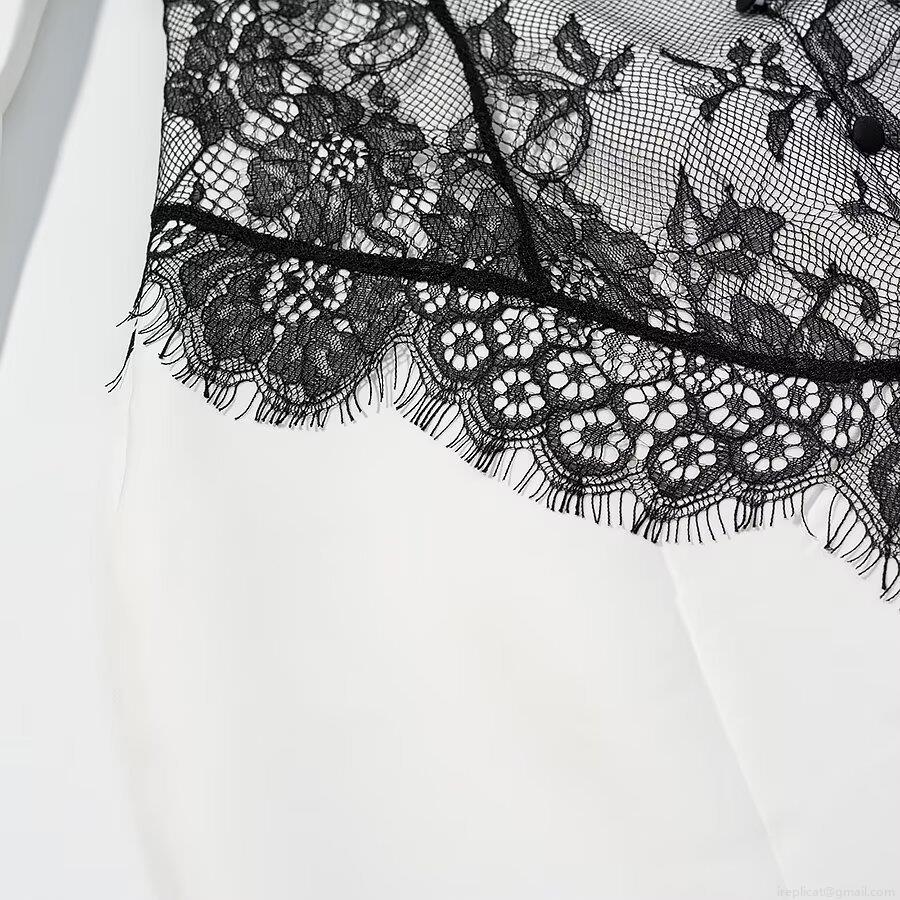 Deep V-neck, Invisible Zipper, Black Floral Eyelash Lace Patchwork