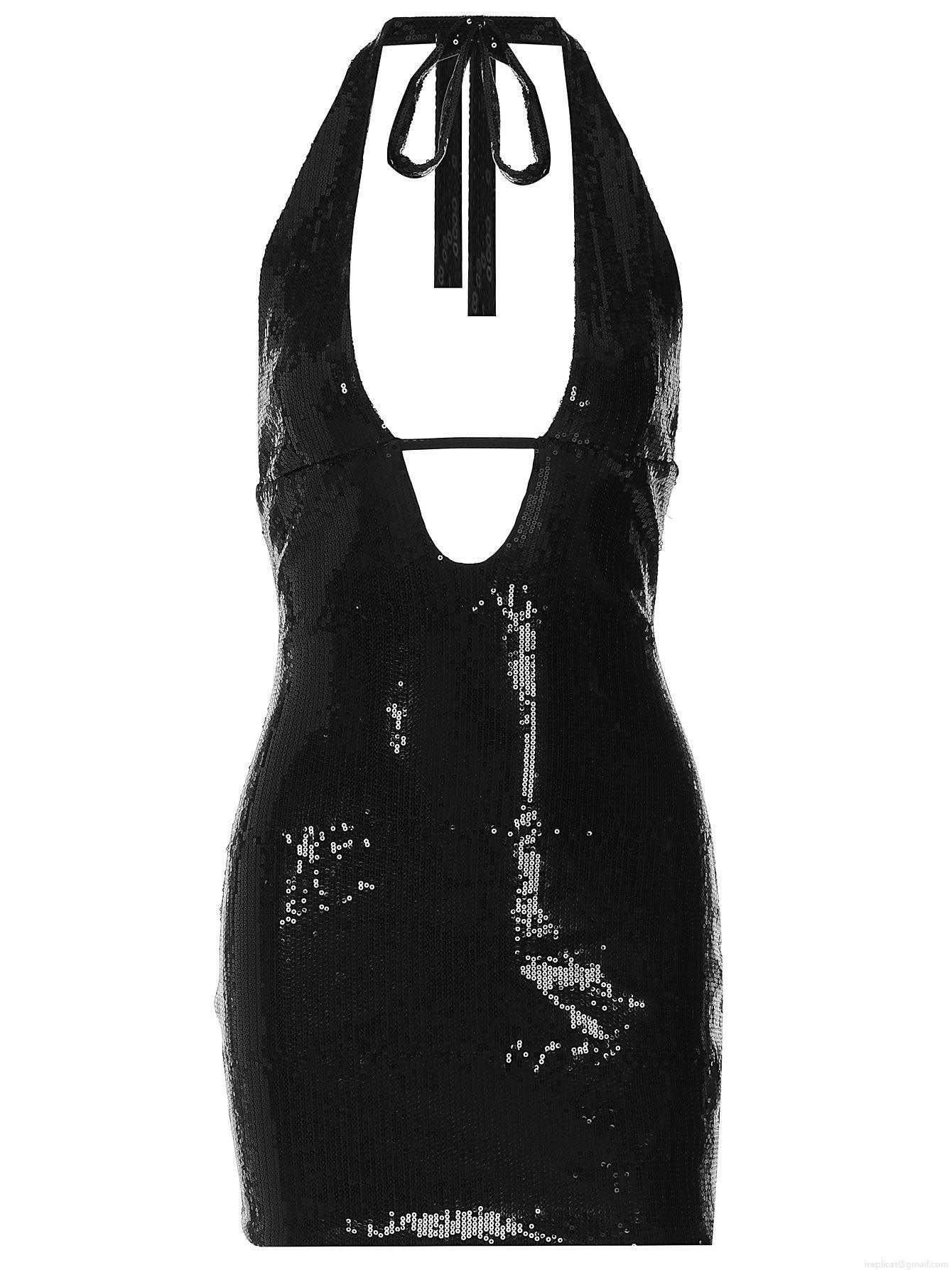 • Women's Sexy Deep V-Neck Sequined Mini Dress Backless Halter Neck Bodycon Clubwear Party Outfit Nightclub Slim Fit Short Dress