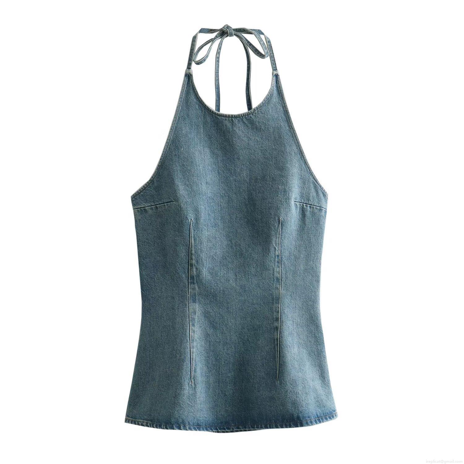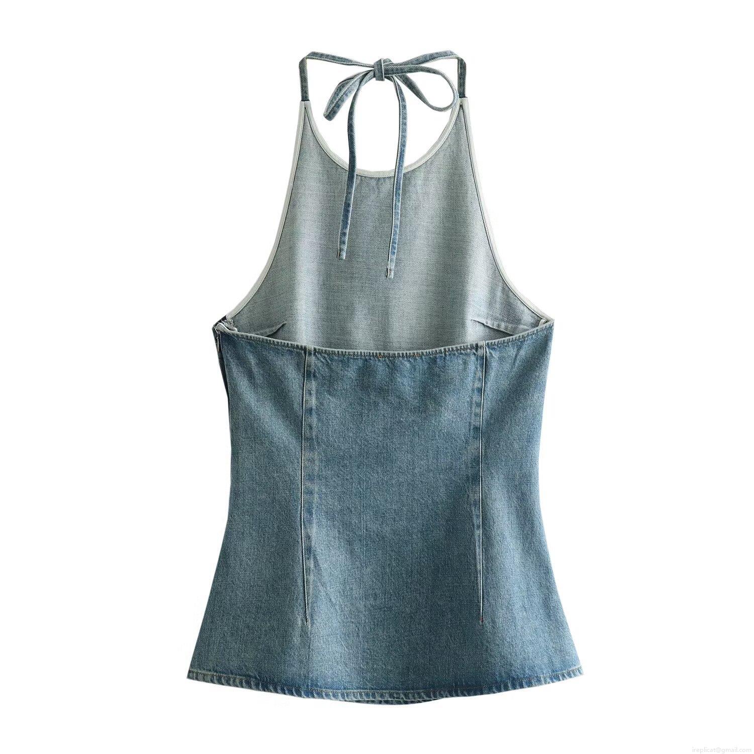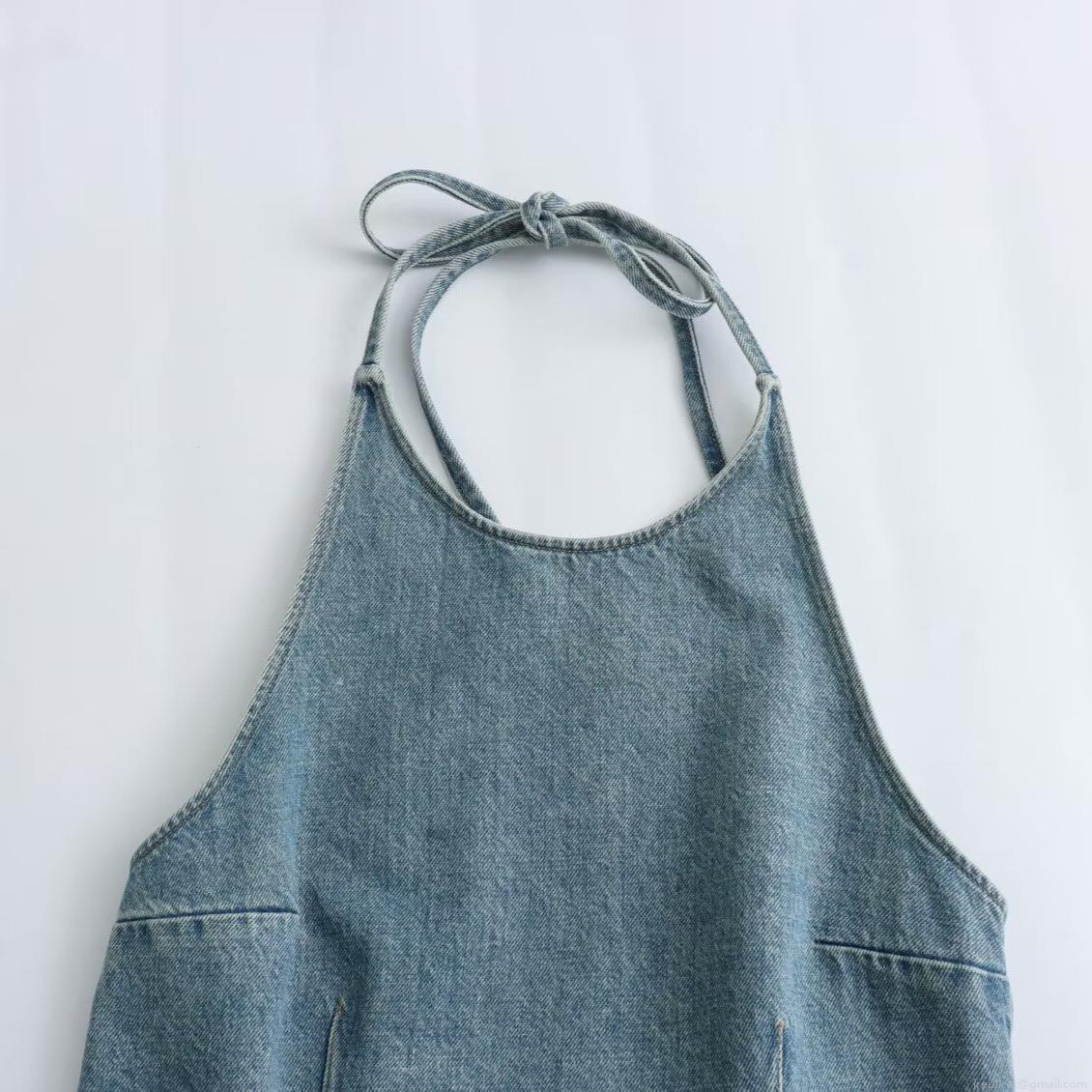 Solid Color, Backless, Metal Zipper, Water Washing Process, Halter Neck Strap