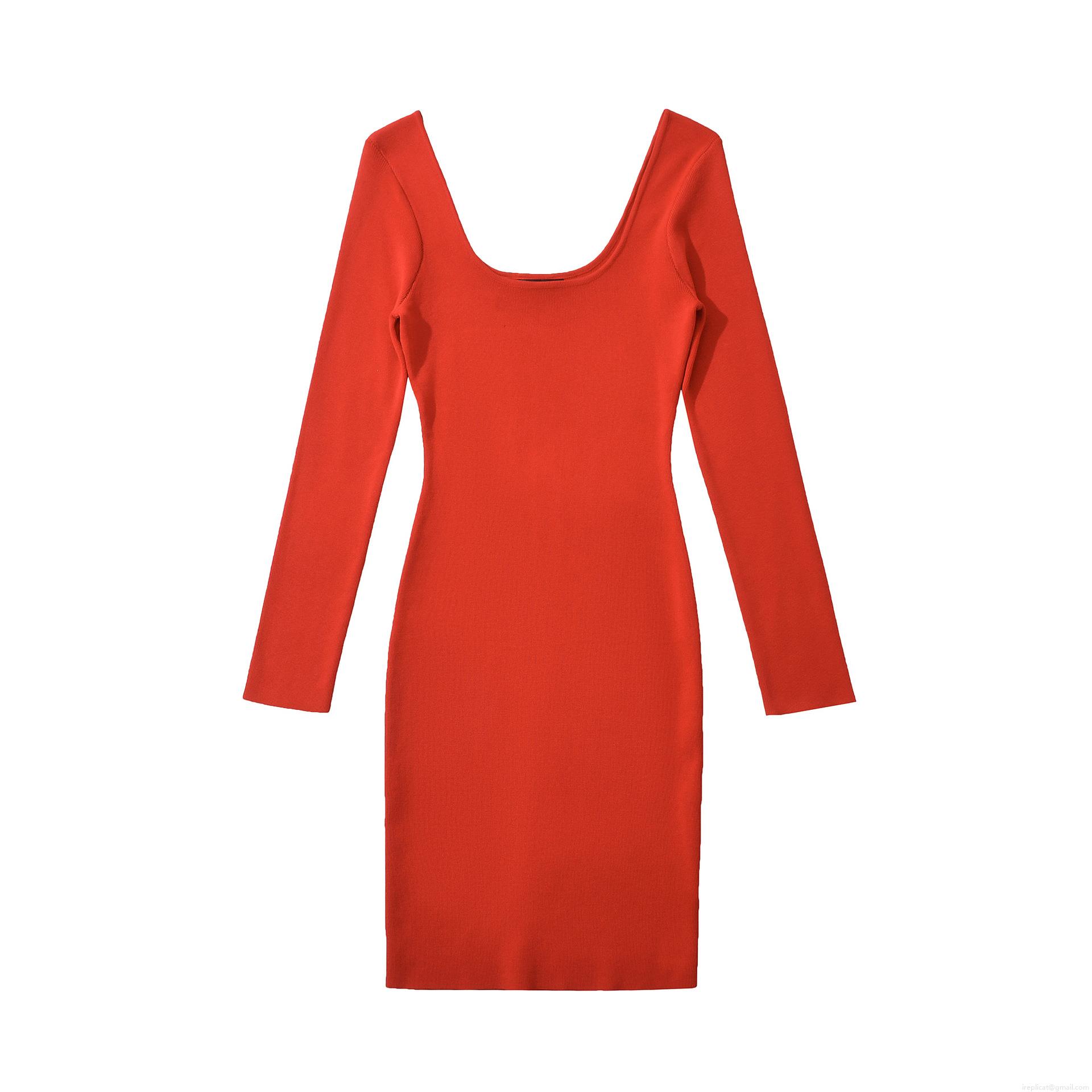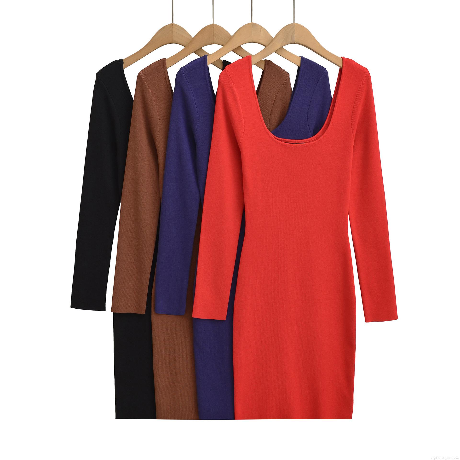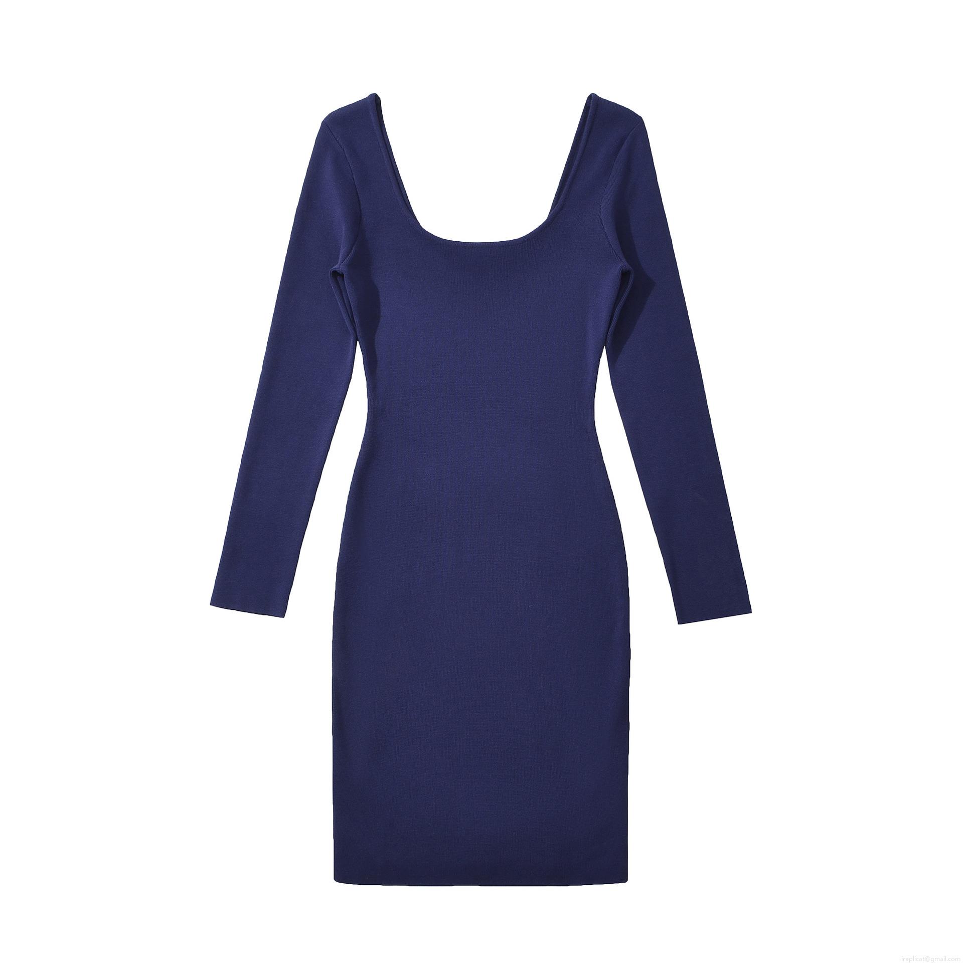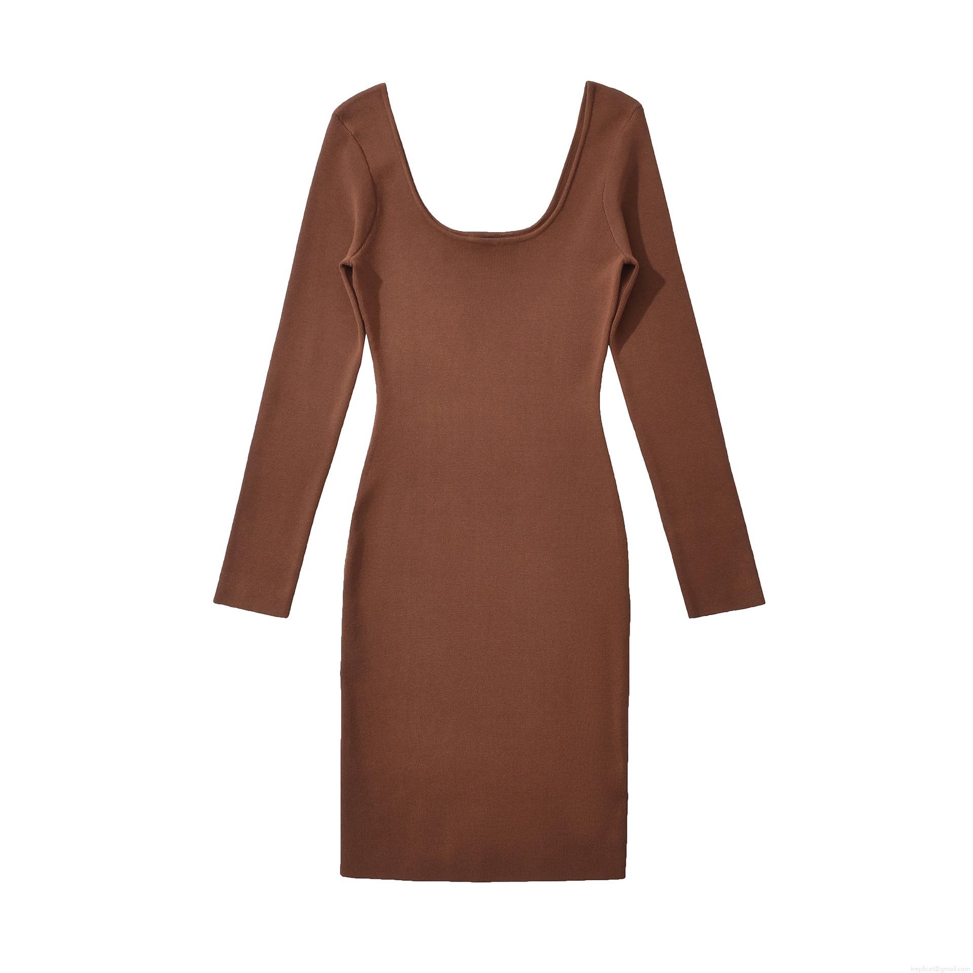 • Women's Sexy Double U-Neck Long Sleeve Knitted Dress Slim Fit Solid Color Cotton Blend Bodycon Mini Dress For Autumn Spring Casual Streetwear