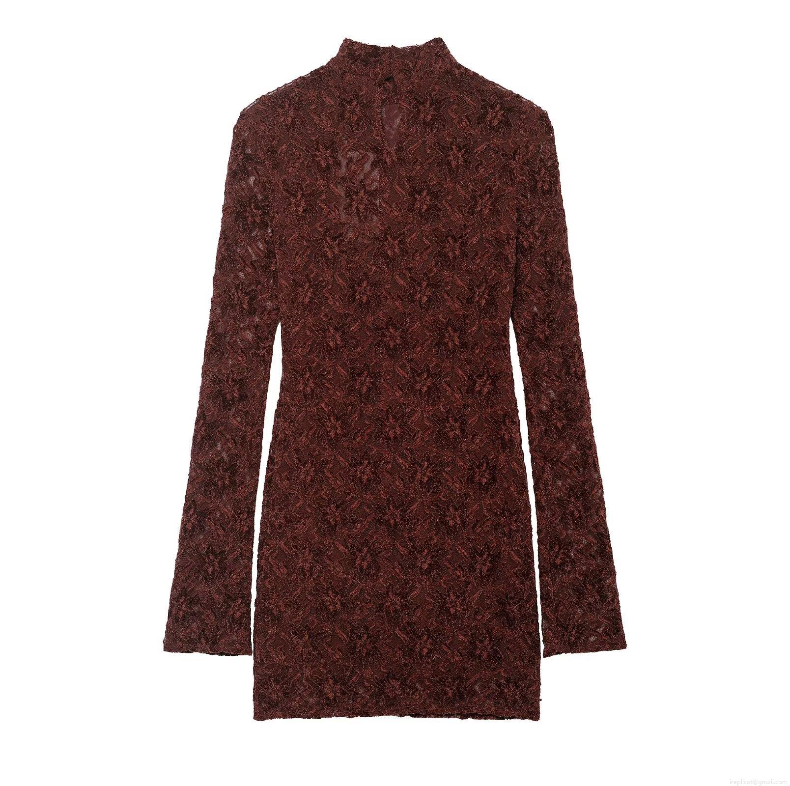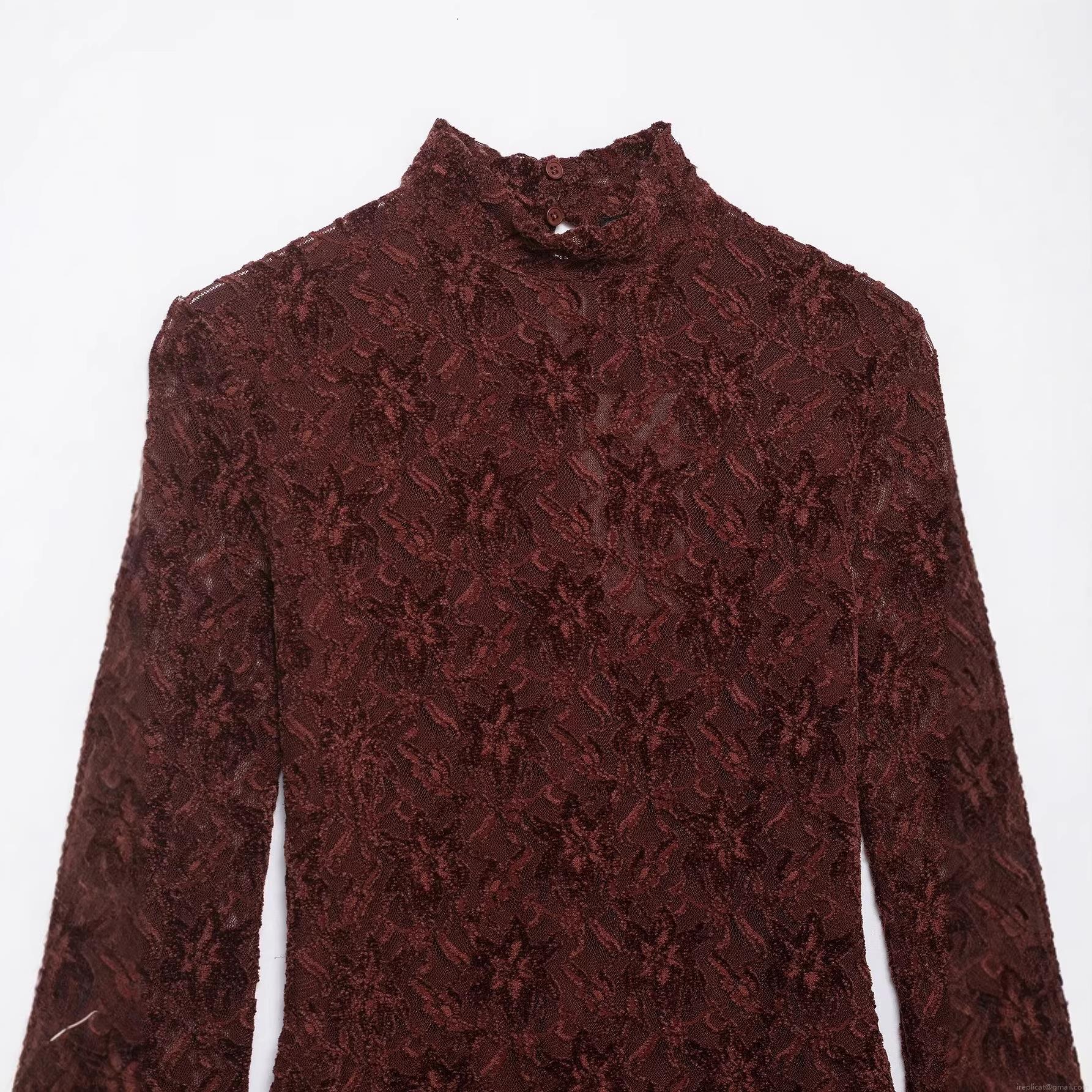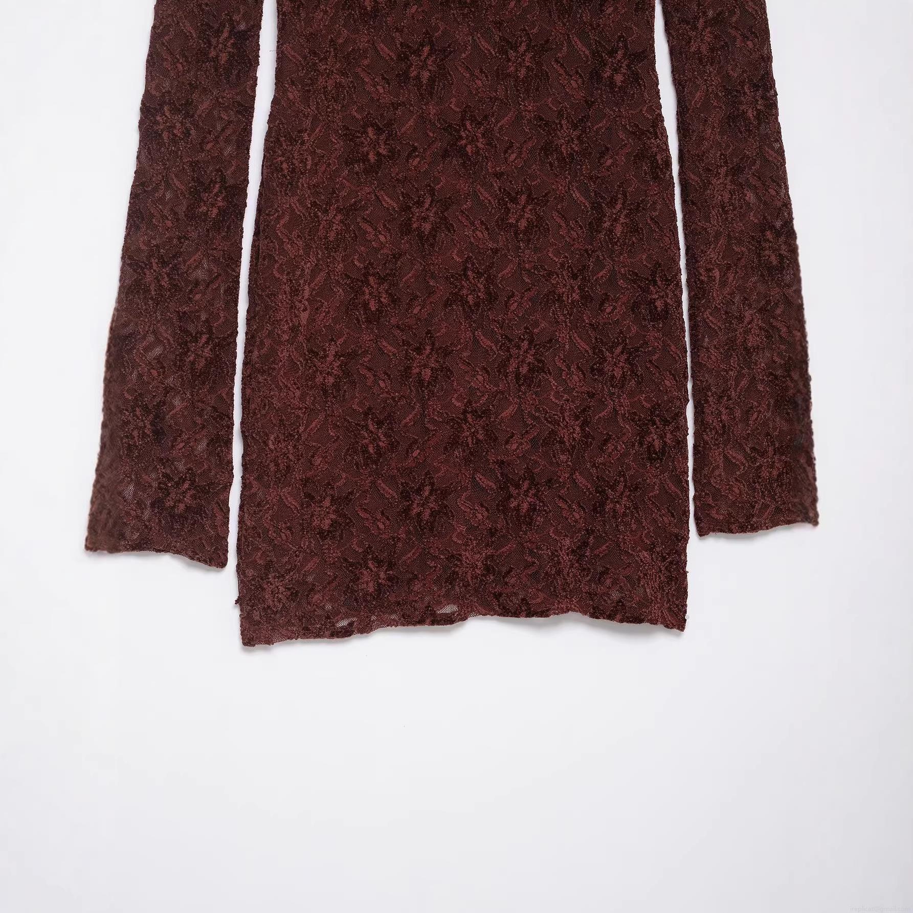 • Women's Sexy Elegant Lace Mini Dress Stand Collar Long Sleeve Hollow Out Wine Red Polyester Floral Mesh Splicing Slim Fit A-Line Dress For Party Evening Clubwear Ladies Clothing