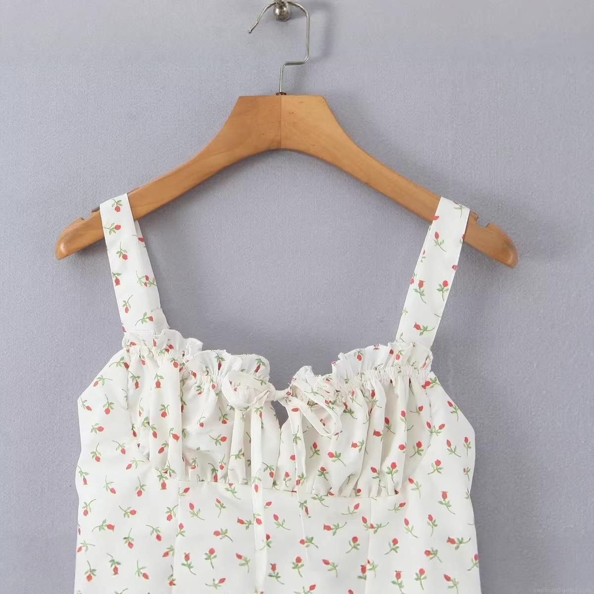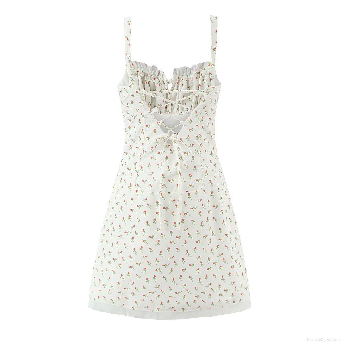 • Women's Sexy Floral Cami Dress Backless Lace-up Spaghetti Strap Rose Print Mini A-line Ruffle Summer Beach Dress
