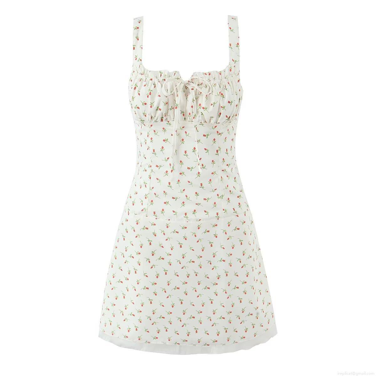 Women's Sexy Floral Cami Dress Backless Lace-up Spaghetti Strap Rose Print Mini A-line Ruffle Summer Beach Dress