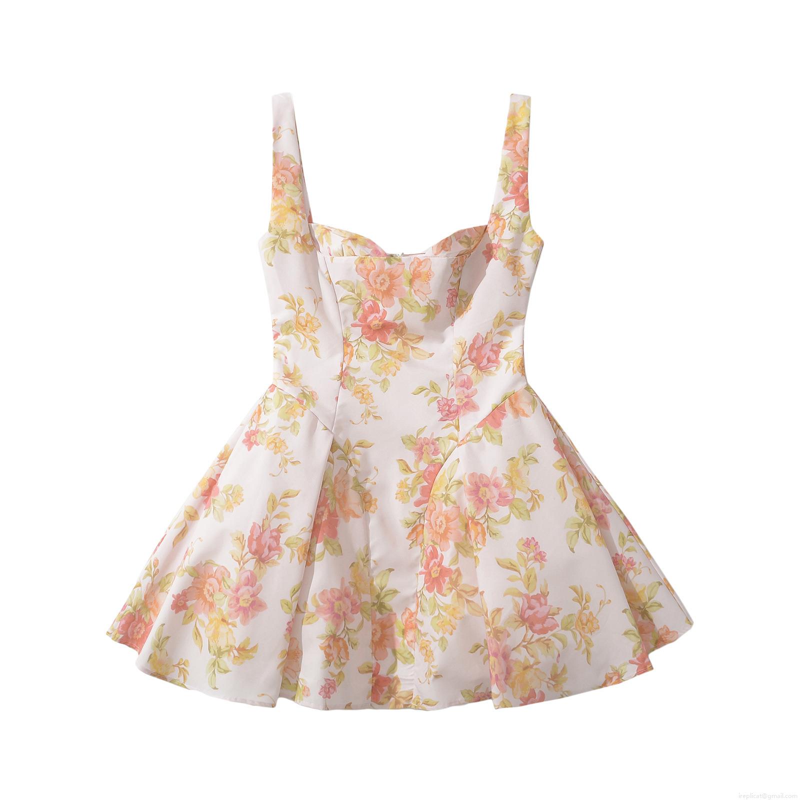 • Women's Sexy Floral Print Mini Dress Backless Spaghetti Strap V-Neck A-Line Summer Party Vacation Dresses Elegant Cotton Polyester Blend Slim Fit Sundress For Women