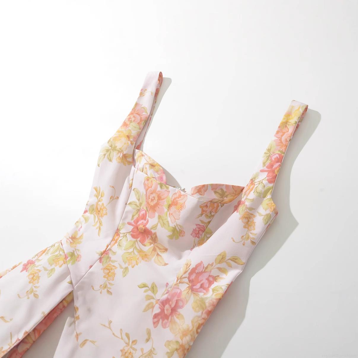 Floral Pattern, Plants And Flowers, Waist shaping, Printing, Suspenders, Backless