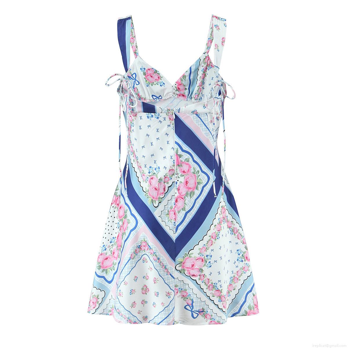• Women's Sexy Floral Print Satin Mini Cami Dress V Neck Lace Trim Spaghetti Strap Pastoral Style Rose Flower Patchwork Summer Dress