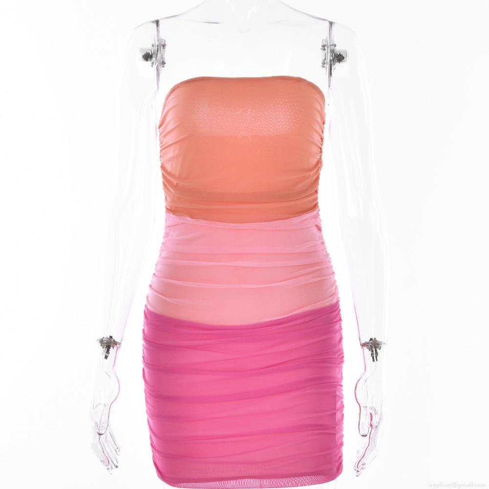 Gradient, Color Blocking, Backless, Mesh Splicing, Pleated Design, Off-the-shoulder Tube Top