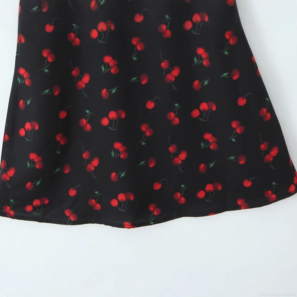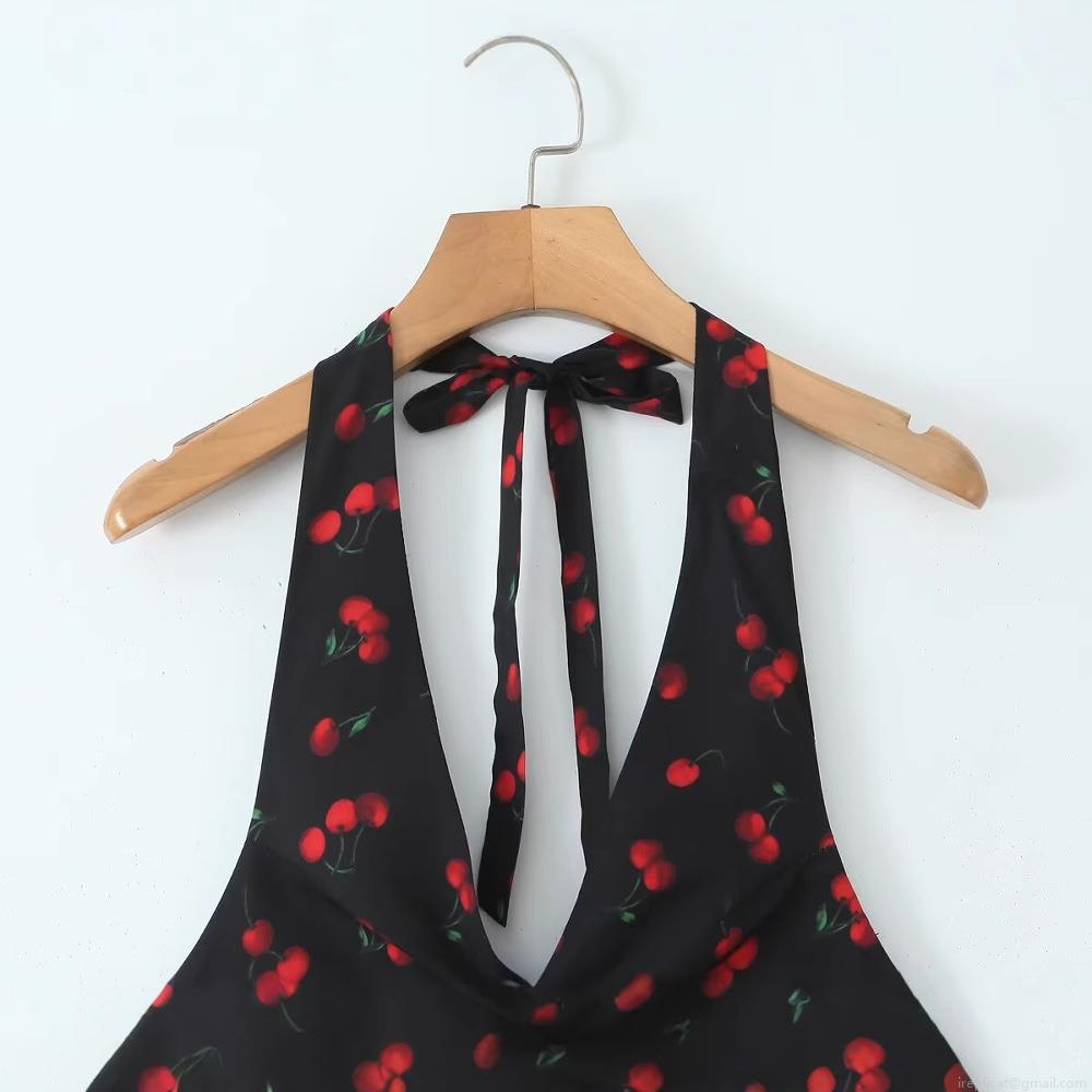 Printing, Straps, Neckband, V-neck, Backless, Cherry Print