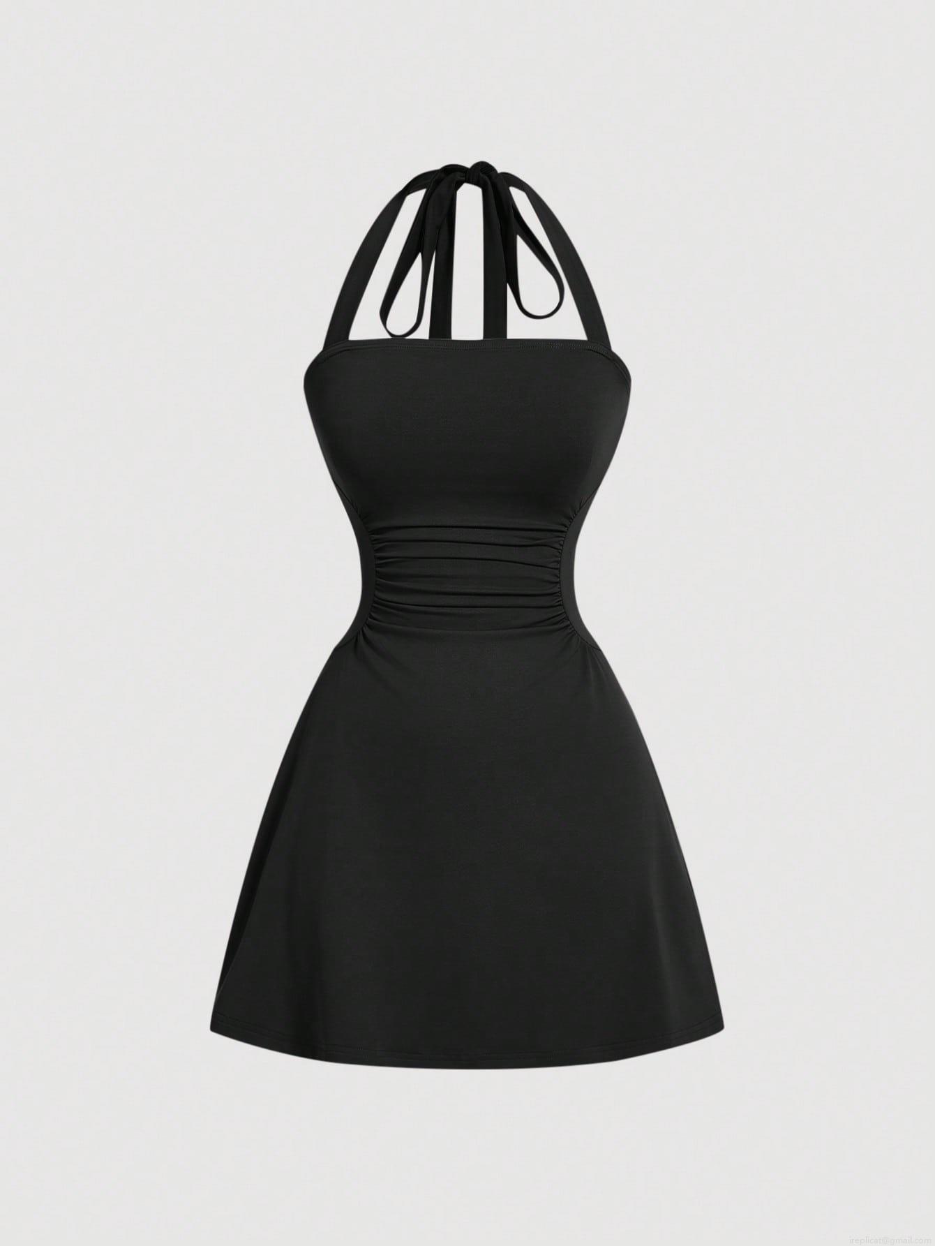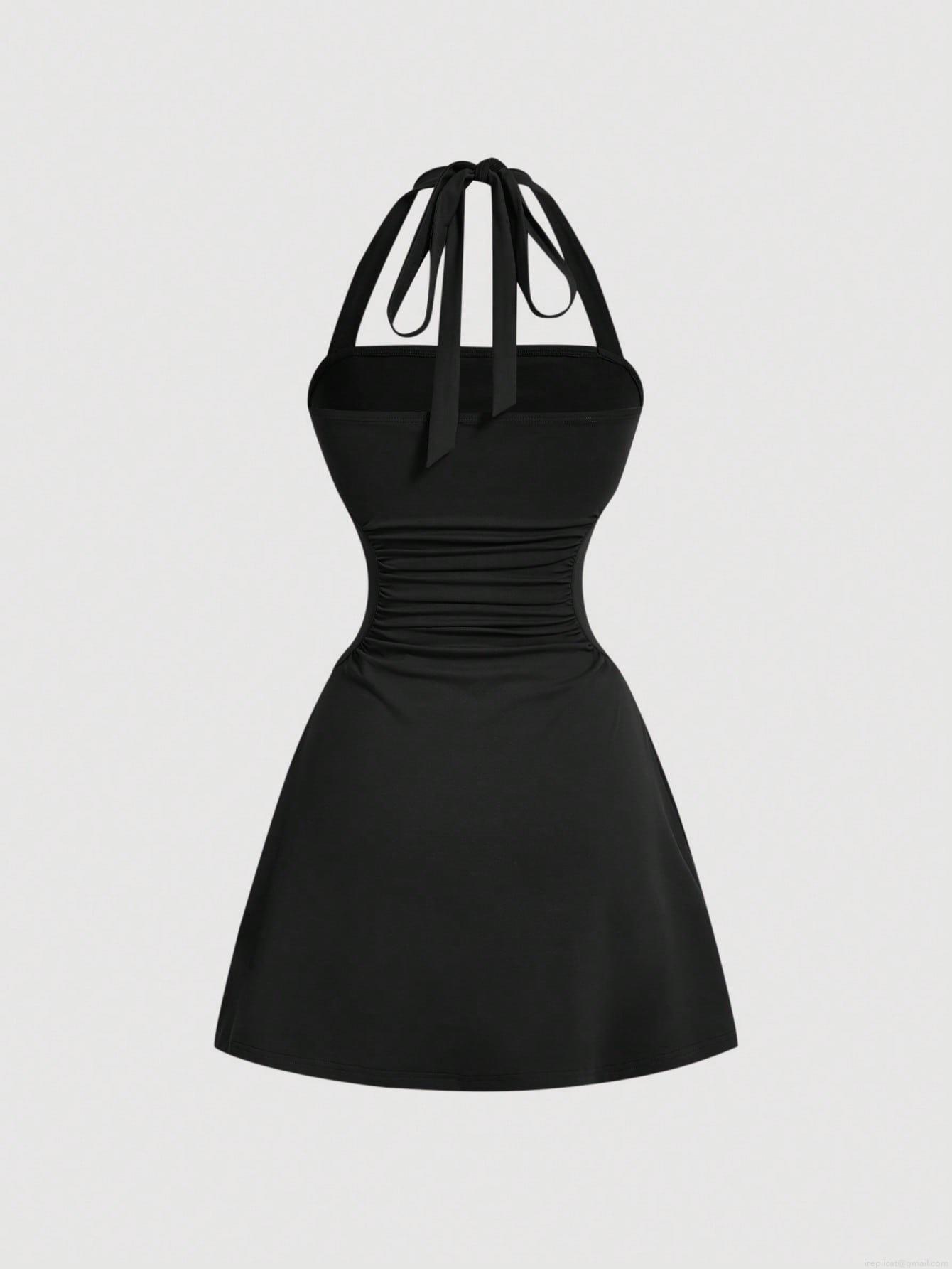 • Women's Sexy Halter Backless Mini Dress Elegant Ruched High Waist Slim Fit Sleeveless Polyester Spandex Knitting Party Dress For Summer