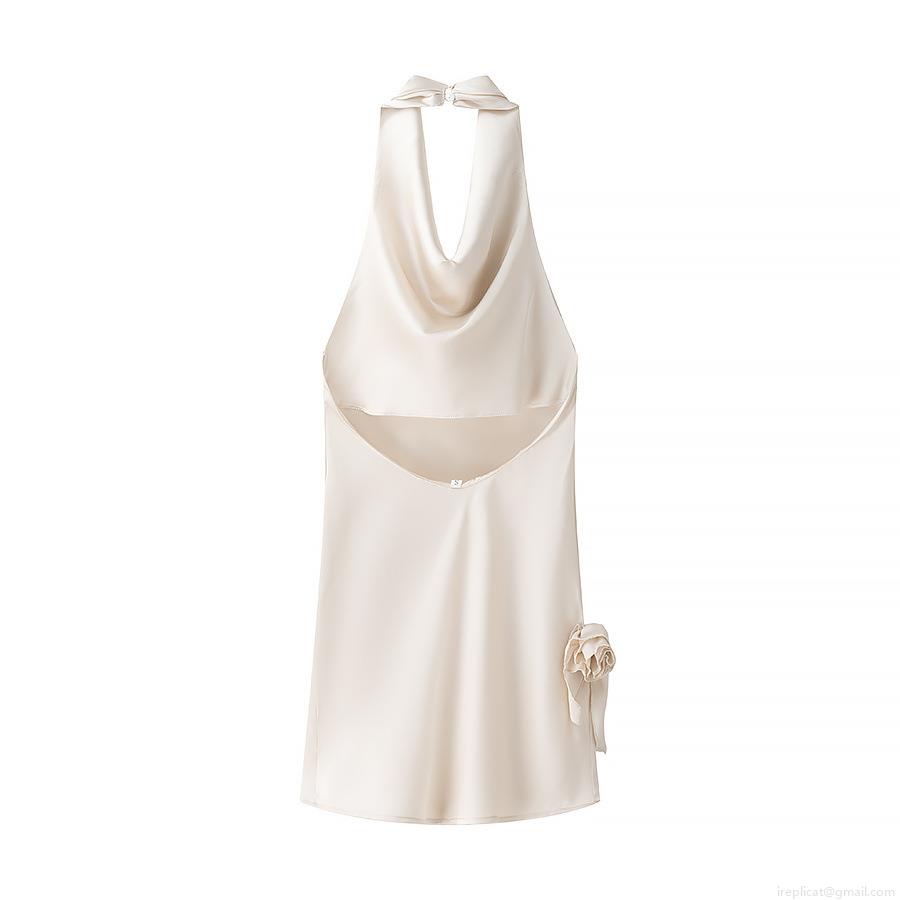 • Women's Sexy Halter Backless Satin Mini Dress With 3D Flower Decoration Ruched A-Line Party Cocktail Dress Summer Vacation Clubwear Outfits Beige 100% Polyester