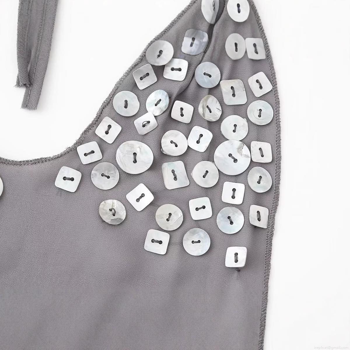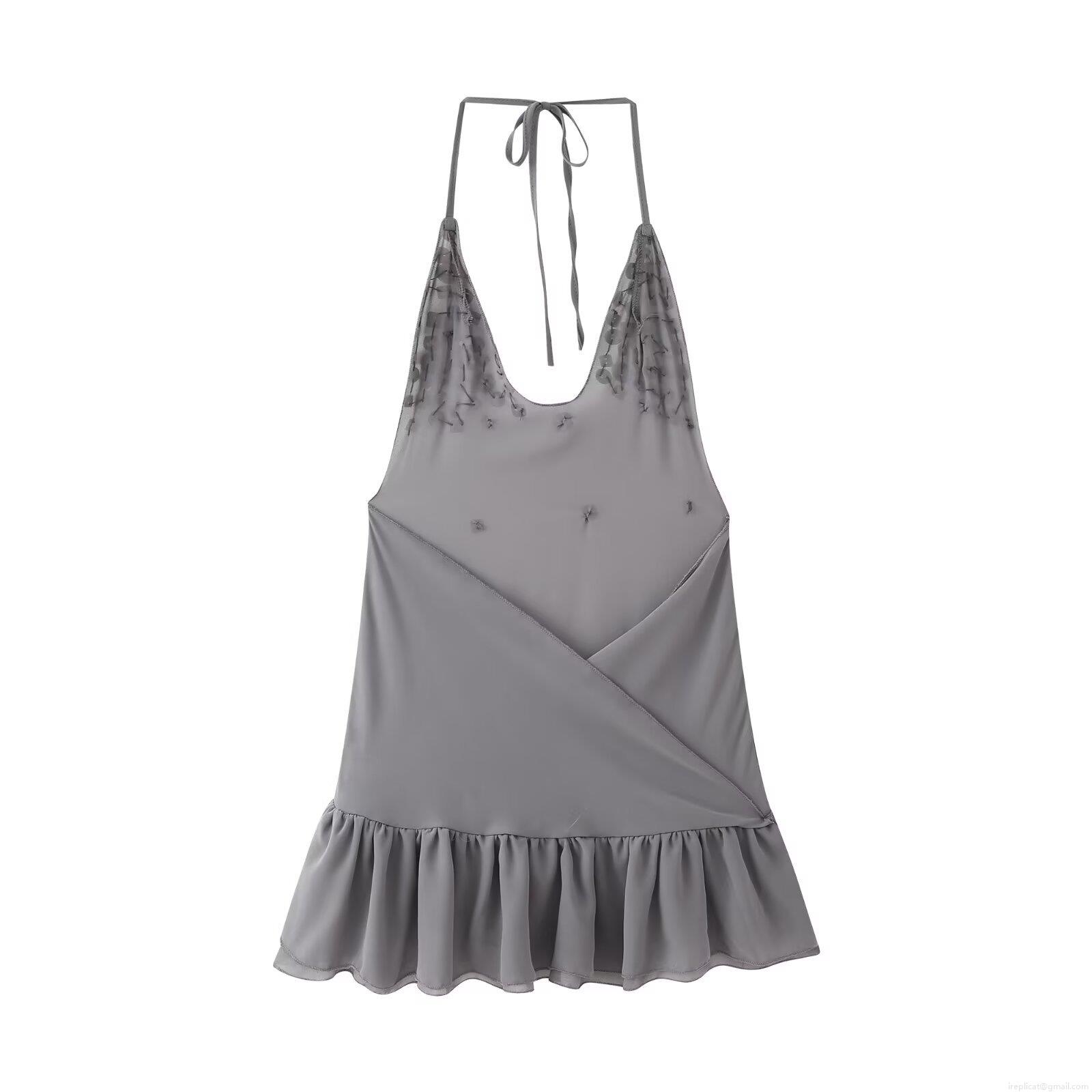 • Women's Sexy Halter Backless Shell Decorated Mini Dress Sleeveless Ruffle Hem Polyester Gray Slim Fit Party Vacation Streetwear Dress