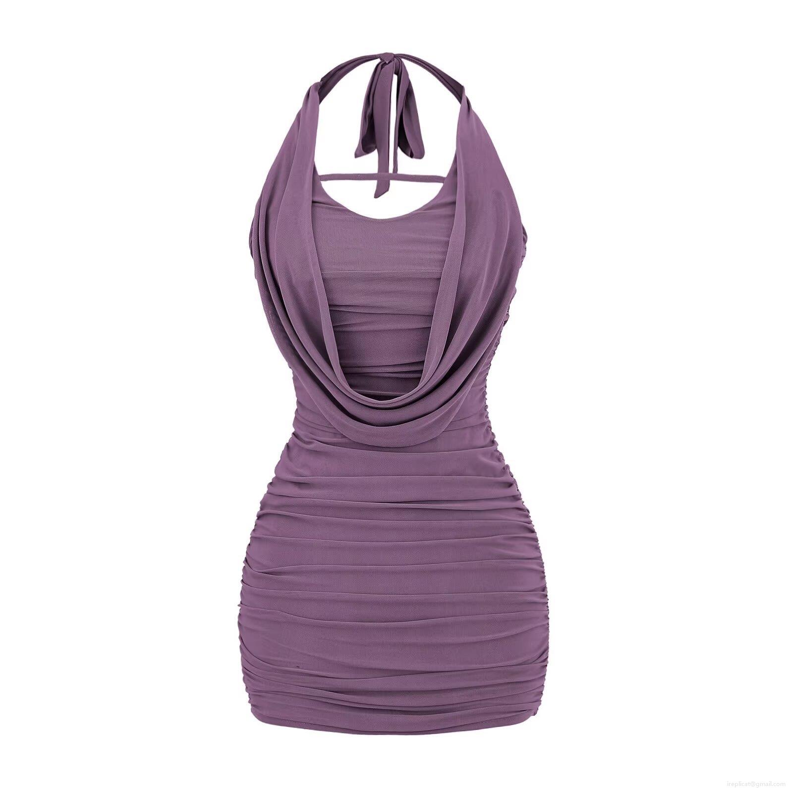 • Women's Sexy Halter Neck Backless Cowl Neck Mesh Ruched Bodycon Mini Dress Summer Streetwear Night Out Party Club Evening Dress Outfits