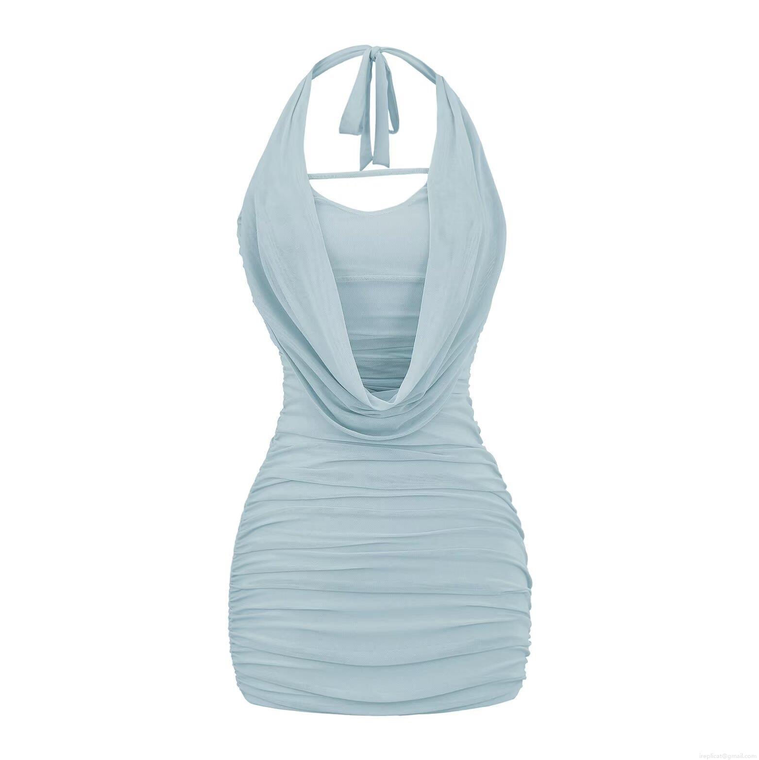Women's Sexy Halter Neck Backless Cowl Neck Mesh Ruched Bodycon Mini Dress Summer Streetwear Night Out Party Club Evening Dress Outfits