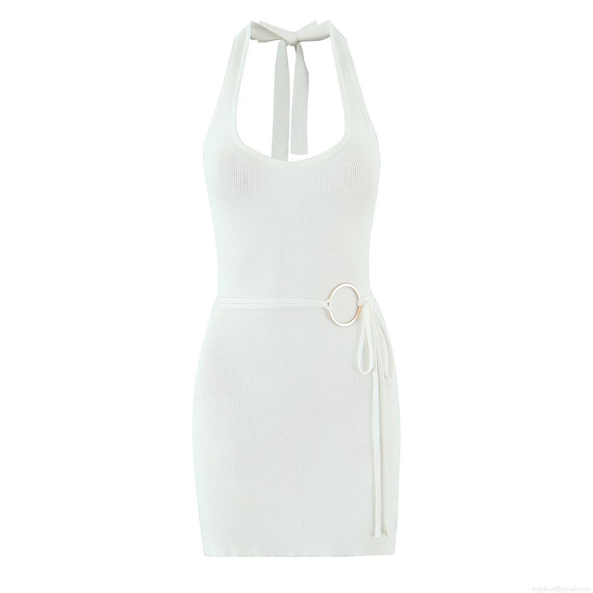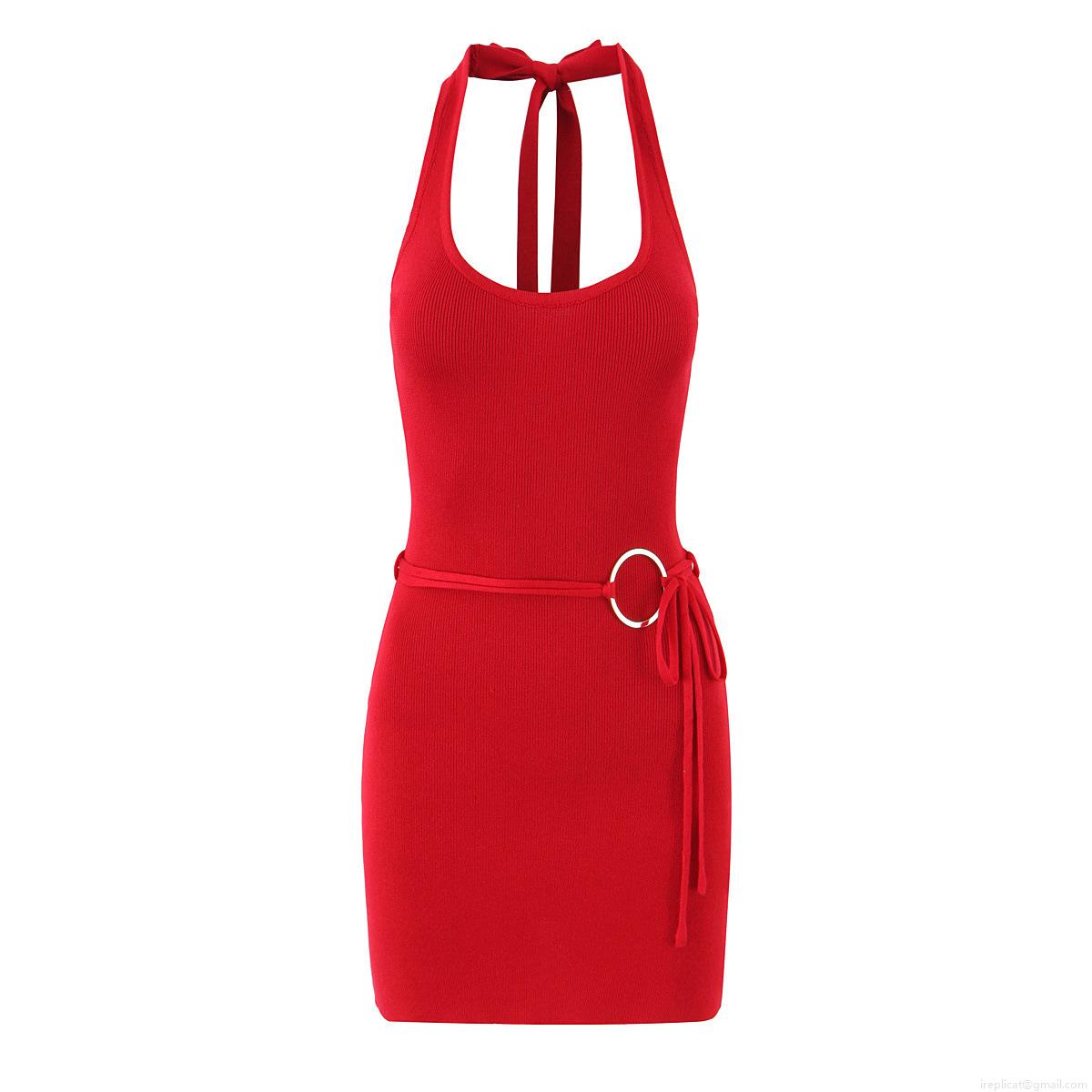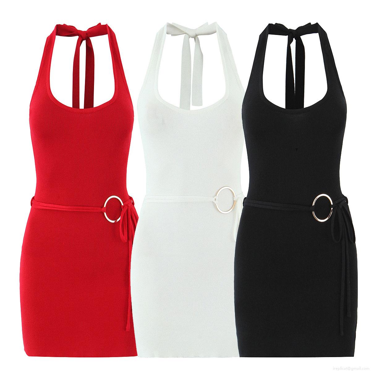 • Women's Sexy Halter Neck Backless Mini Dress Polyester Knit Ribbed Bodycon Dress With Metal Ring Decoration For Summer Party Clubwear