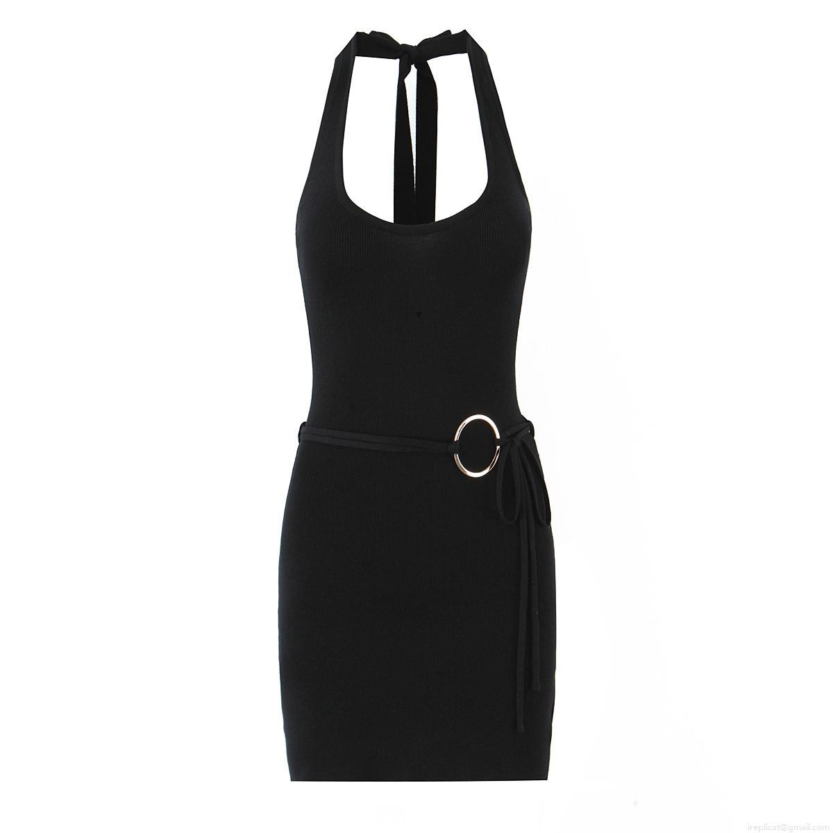 Women's Sexy Halter Neck Backless Mini Dress Polyester Knit Ribbed Bodycon Dress With Metal Ring Decoration For Summer Party Clubwear