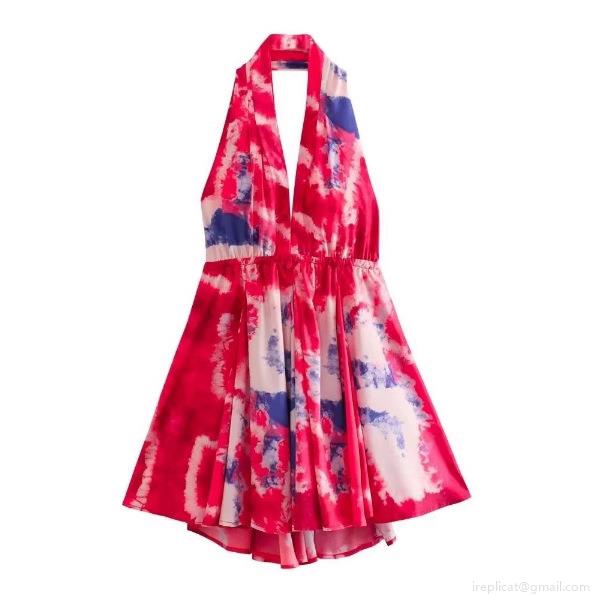 Tie Dye, Floral Pattern, Printing, Lace, Backless, Abstract Texture, Neckband Design