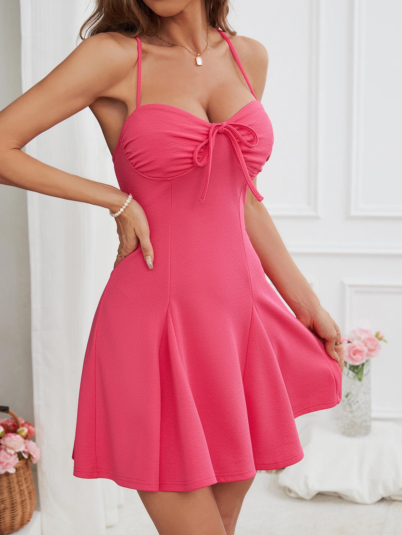 • Women's Sexy Halter Neck Backless Mini Dress Solid Color Textured Knitted A-Line Summer Party Dress with Bow Detail