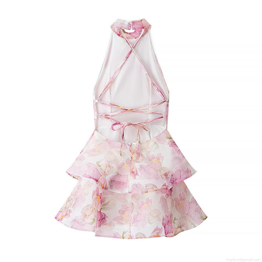 Floral Print, Ruffles, Straps, Neckband, Backless, Layered Skirt