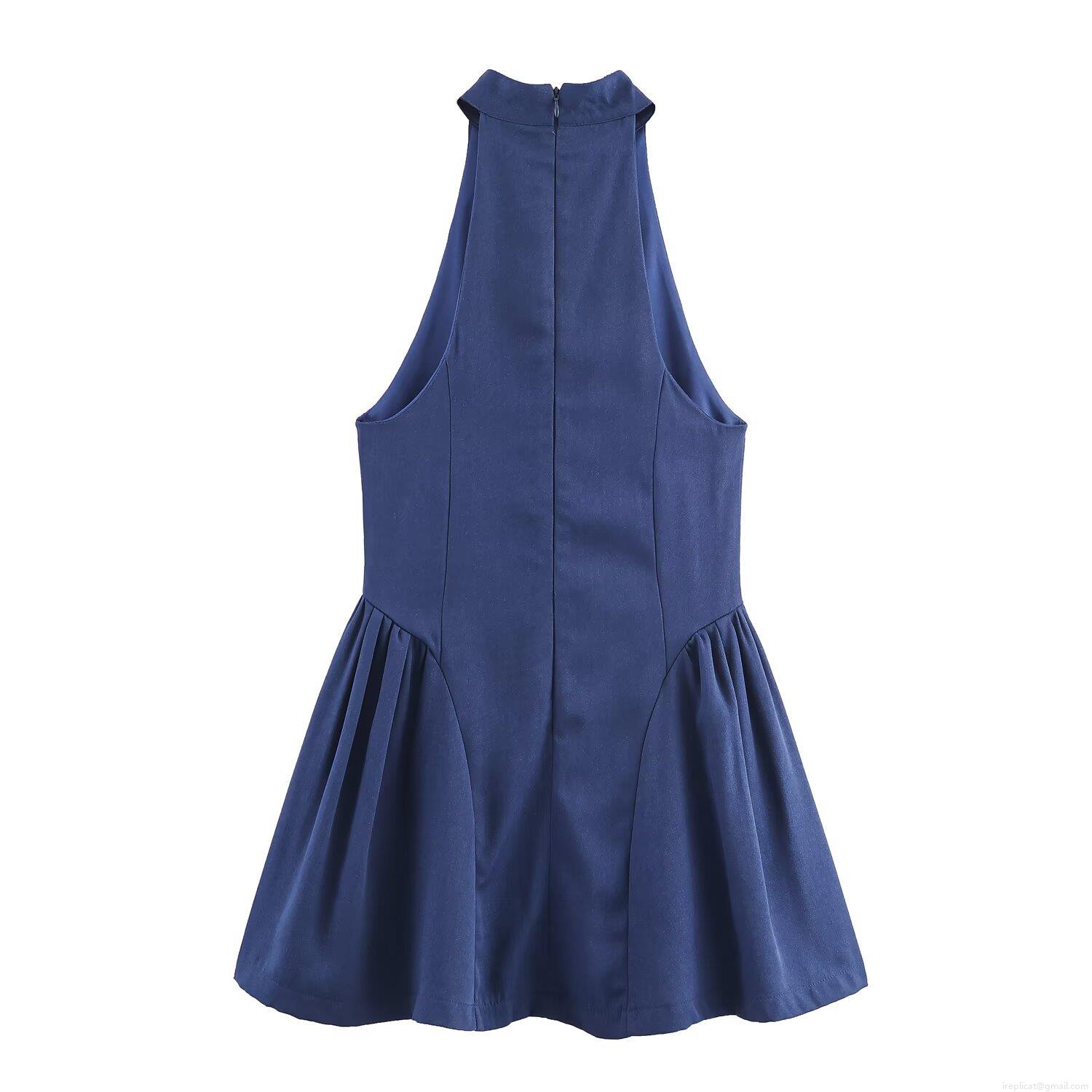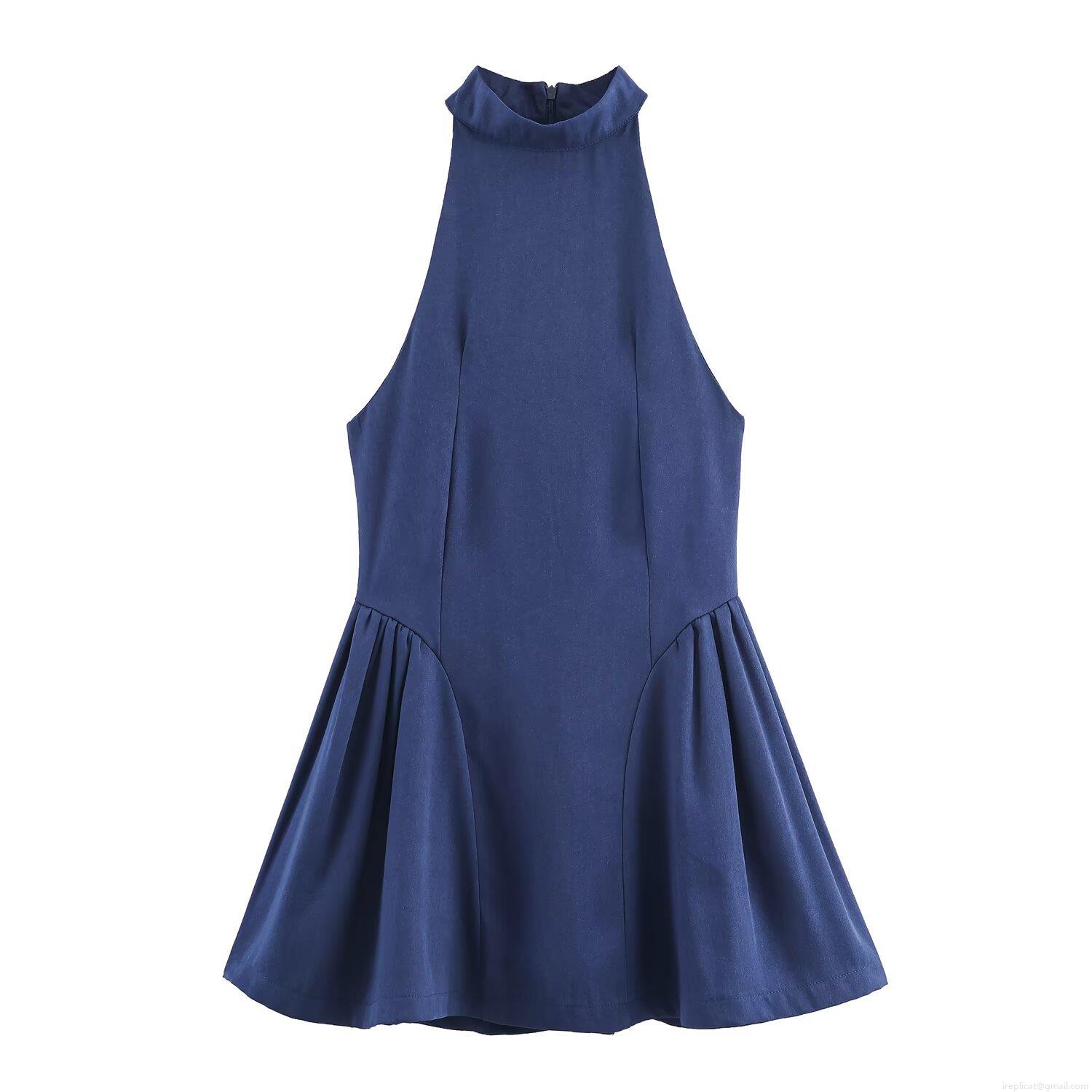 • Women's Sexy Halter Neck Mini Dress Sleeveless Solid Color Pleated Waist Slim Fit Polyester Bodycon Party Dress Streetwear Summer Fashion