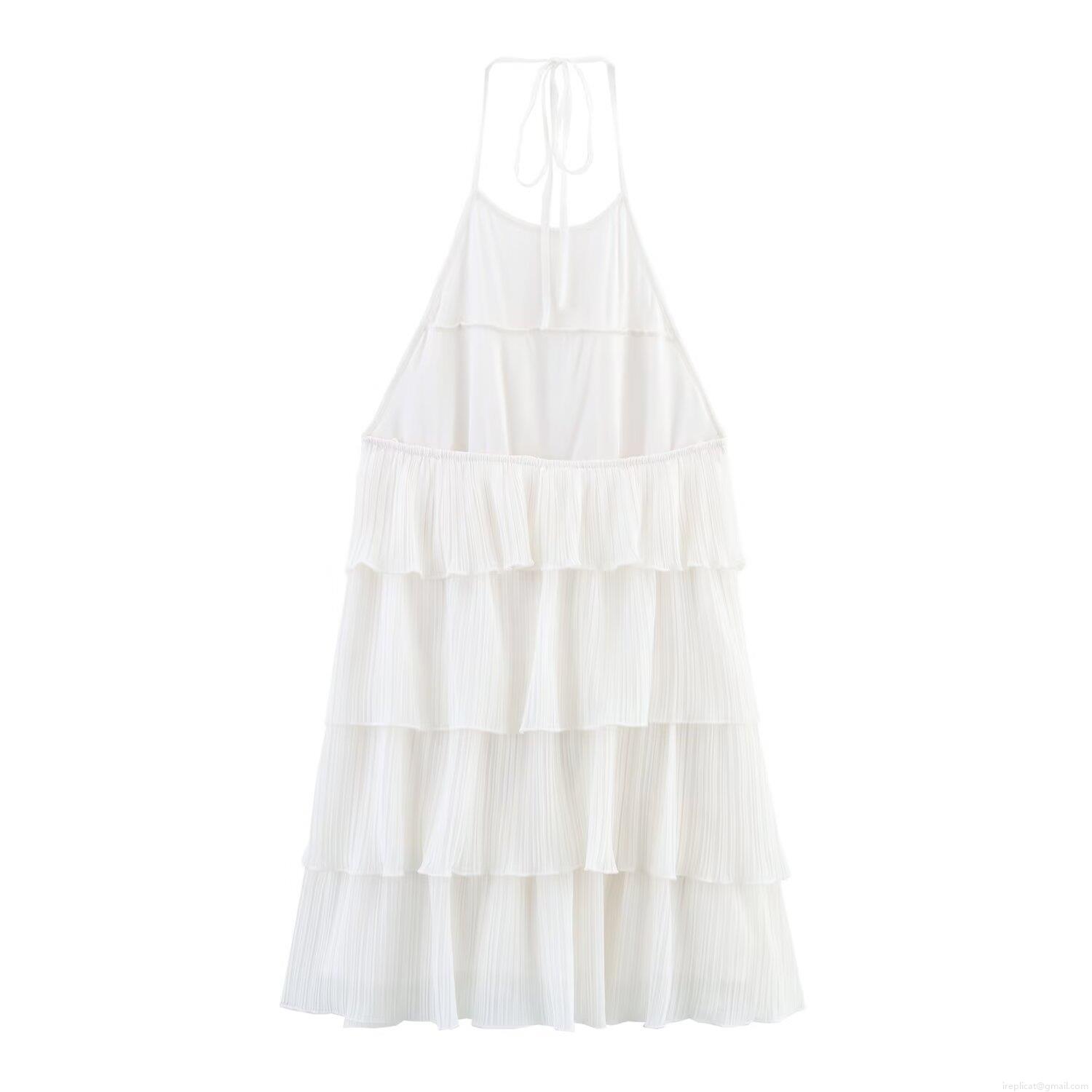• Women's Sexy Halter Neck Mini Dress Summer Chiffon Sleeveless Tiered Layered Pleated A-Line Ruffle Cake Dress For Party Vacation Fashion Dress