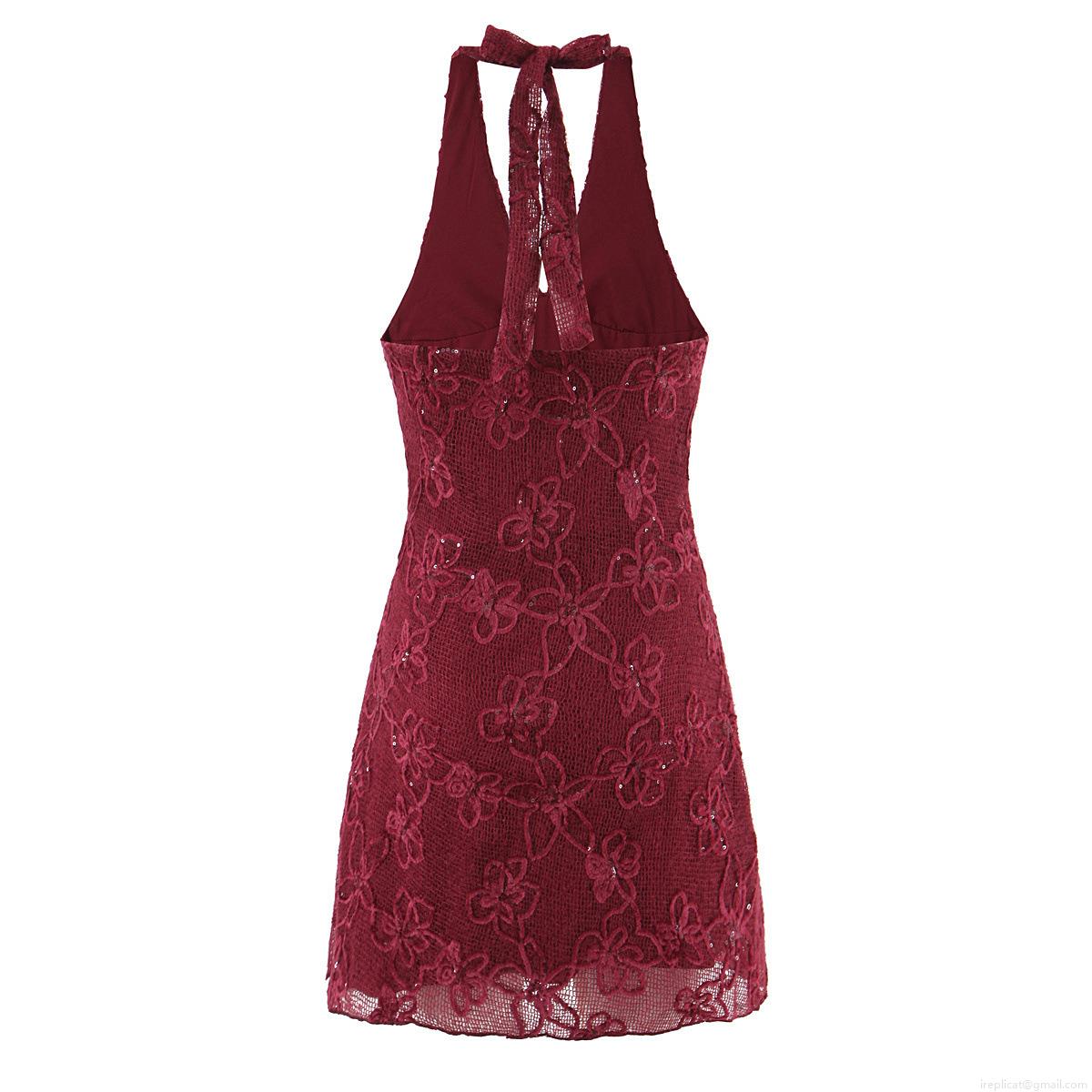• Women's Sexy Halter Neck Mini Dress With 3D Floral Embroidery Mesh Lace Backless Slim Fit Wine Red Party Clubwear Dress