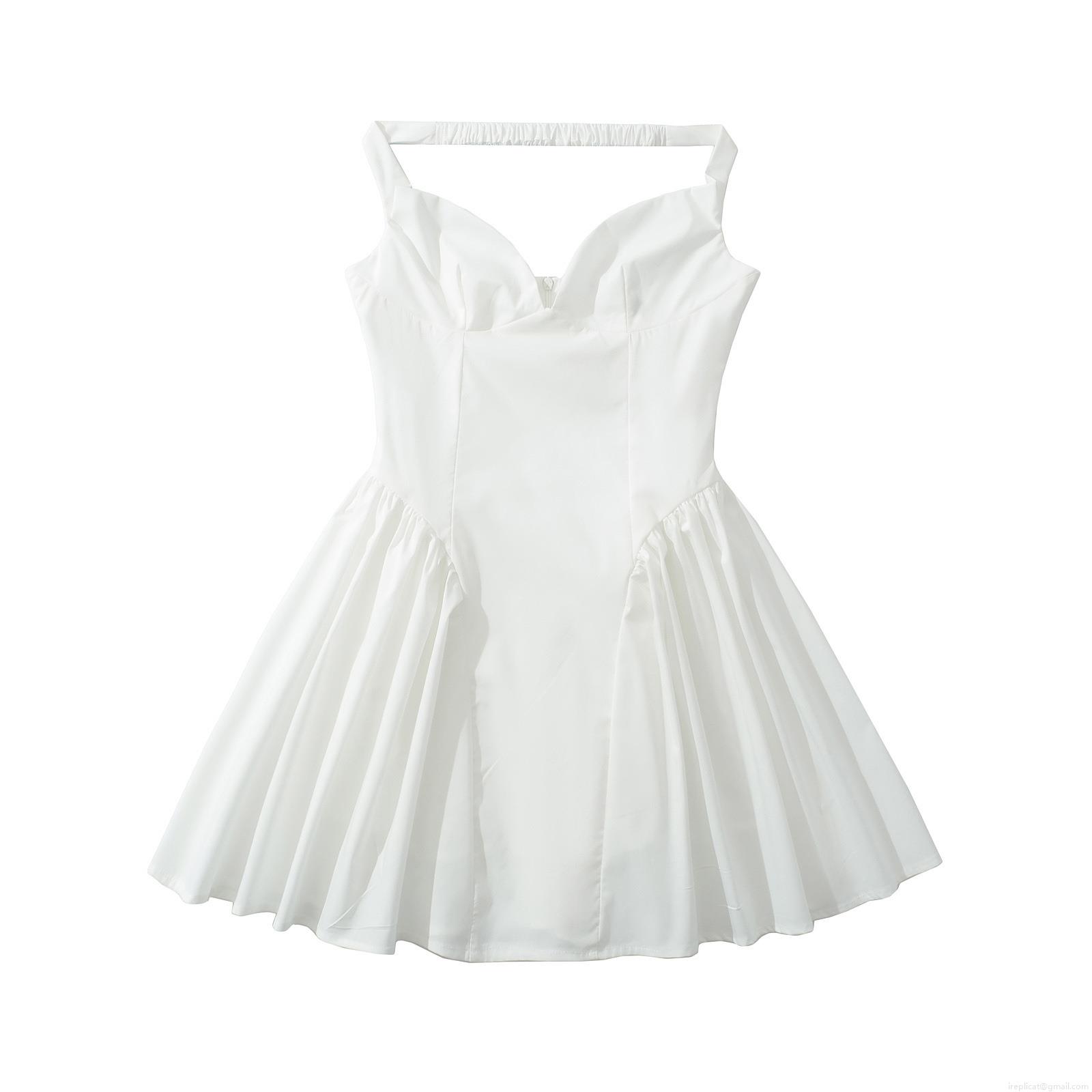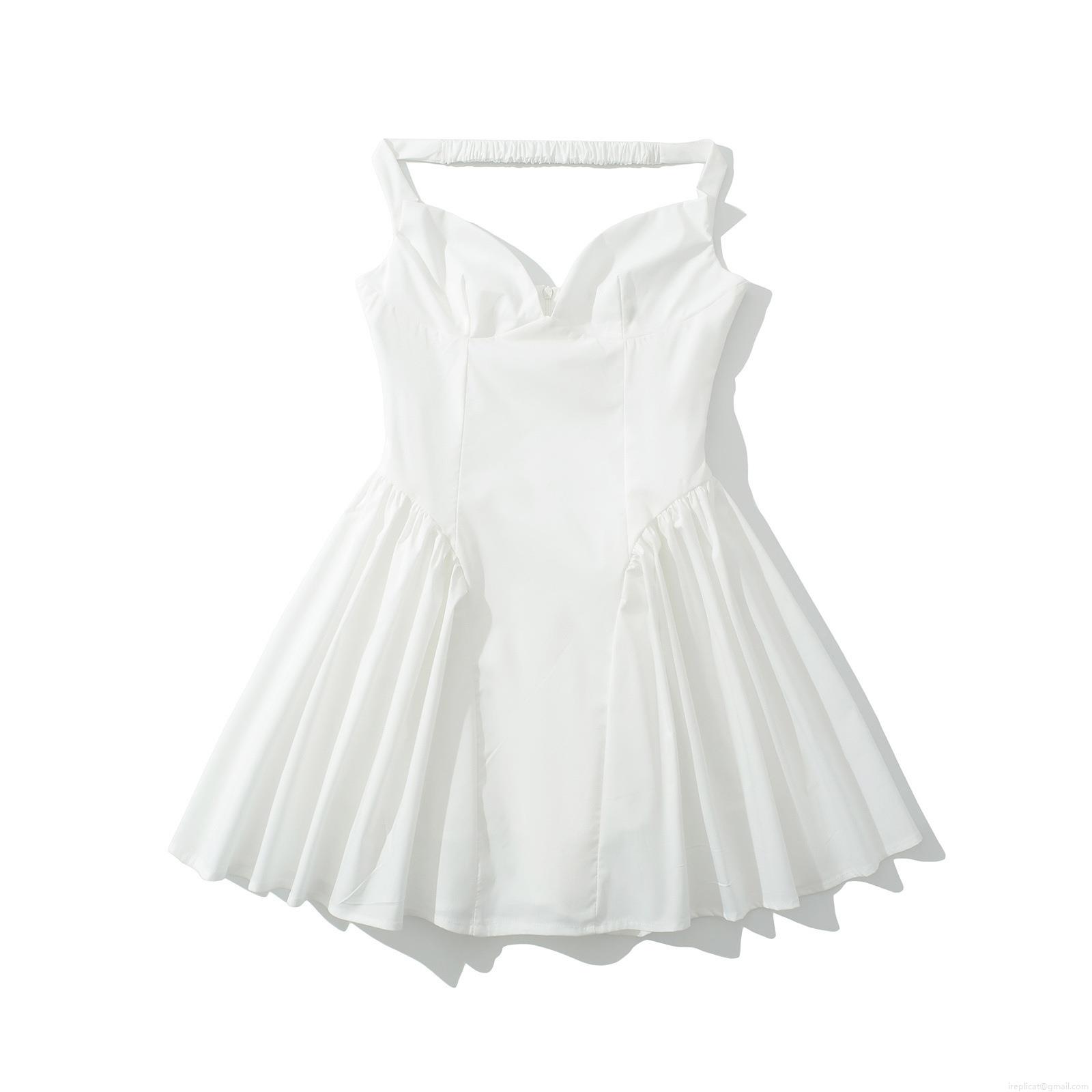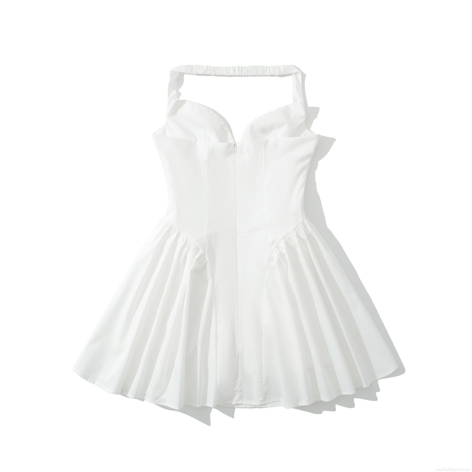 • Women's Sexy Halter Neck Pleated Mini Dress Sleeveless Backless A-Line Short Dress Polyester Cotton Summer Casual Streetwear Party Sundress For Women
