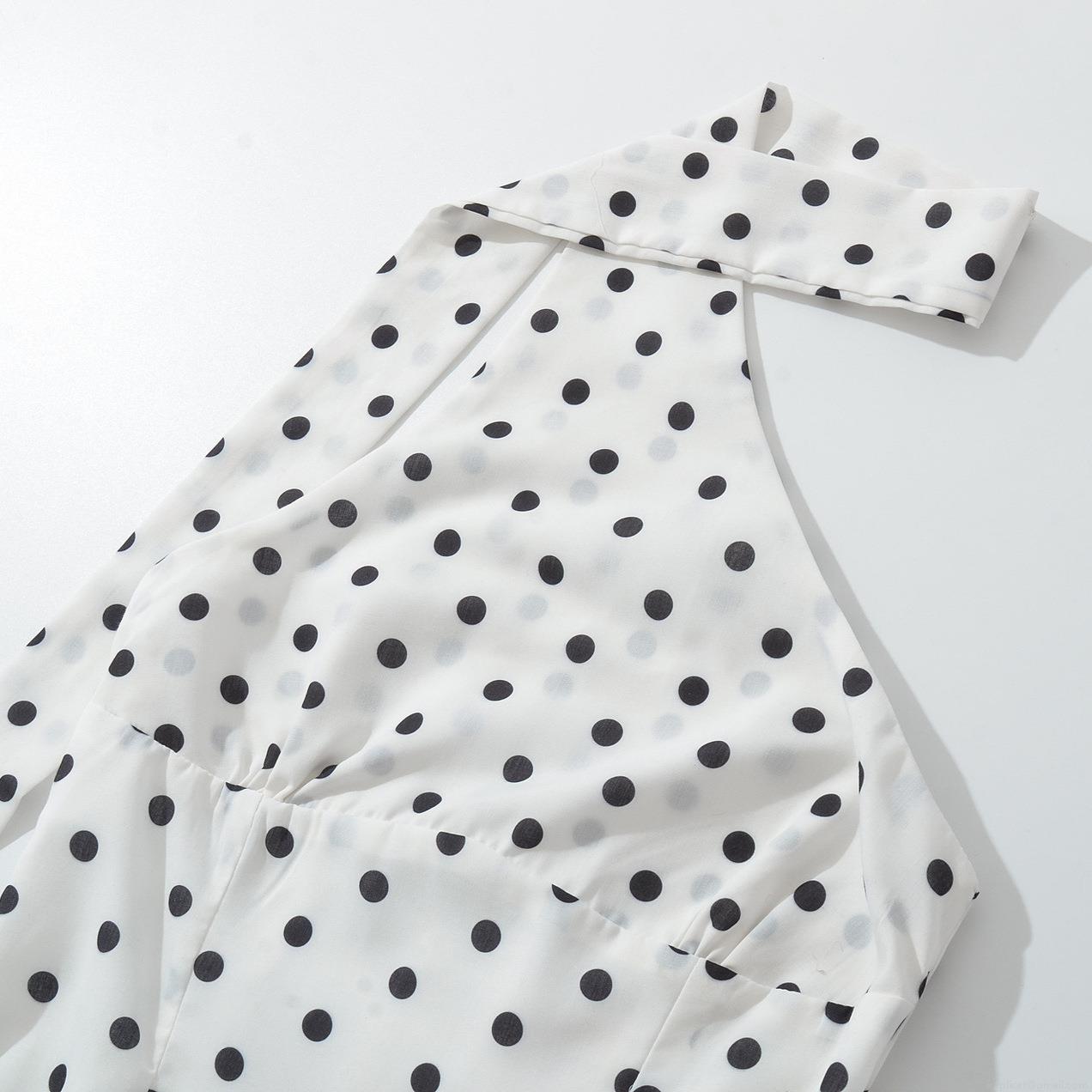 • Women's Sexy Halter Neck Polka Dot Mini Dress One Shoulder Ruffle Hem Bow Tie Waist Backless A-Line Party Dress