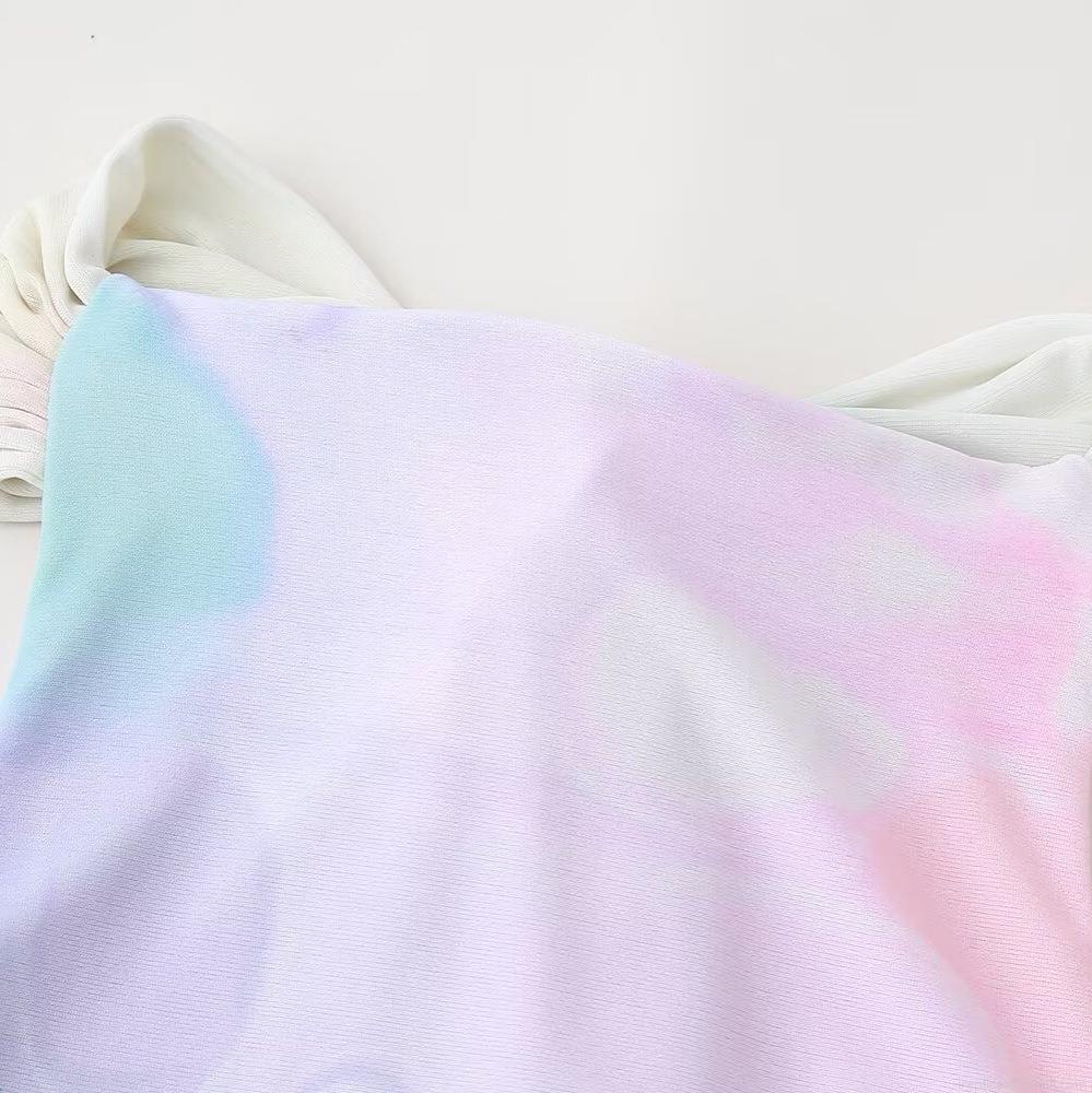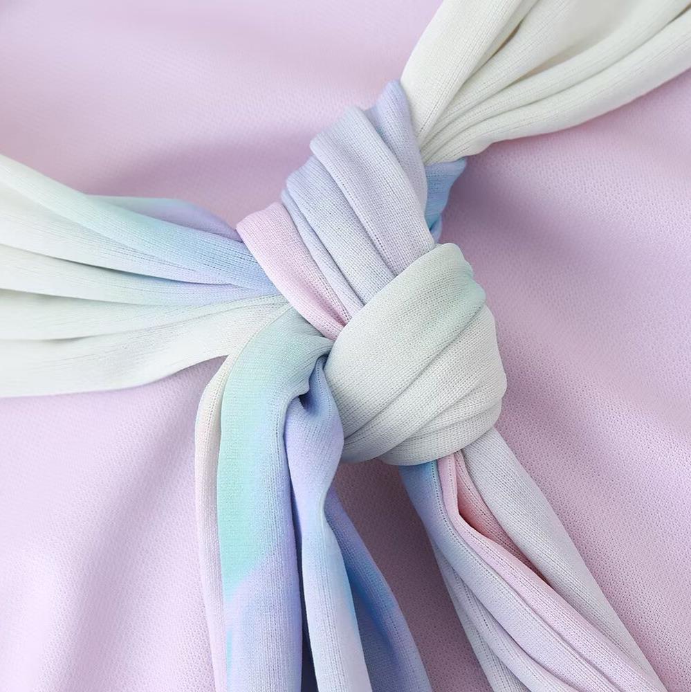 Tie Dye, Gradient, Pleats, Printing, Neckband, Backless