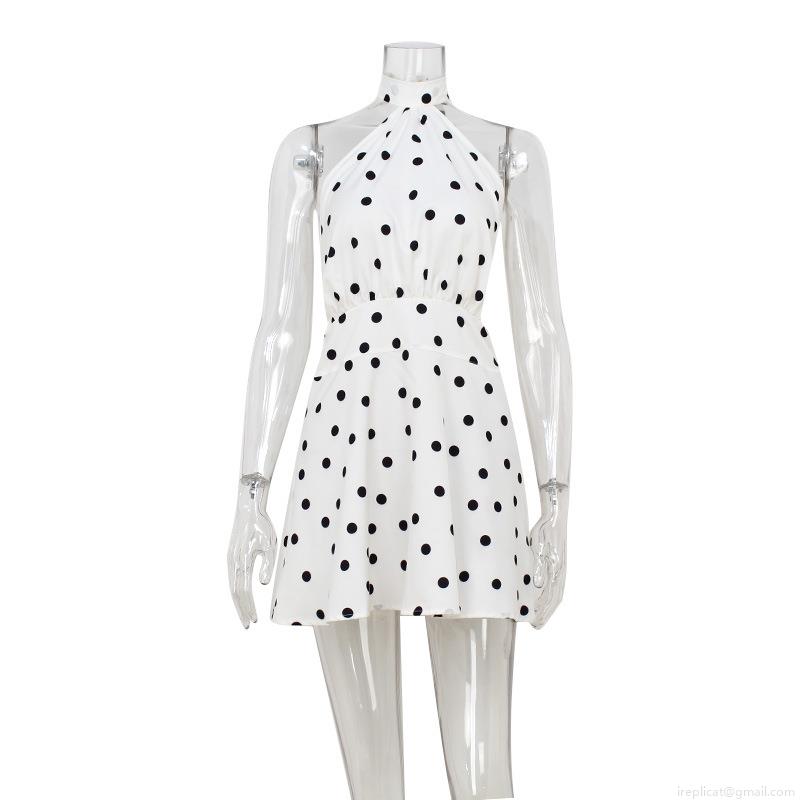 • Women's Sexy Halter Polka Dot Dress Backless A-Line High Waist Mini Vacation Sundress Sleeveless Polyester Spandex Summer Beach Party Dress for Ladies