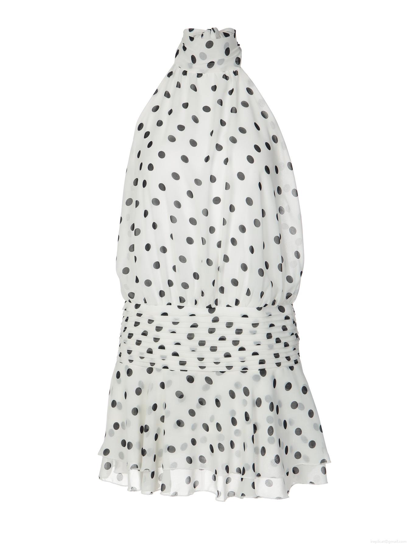 Polka Dots, Pleats, Ruffles, Neckband, Lace, Backless, Polka Dot