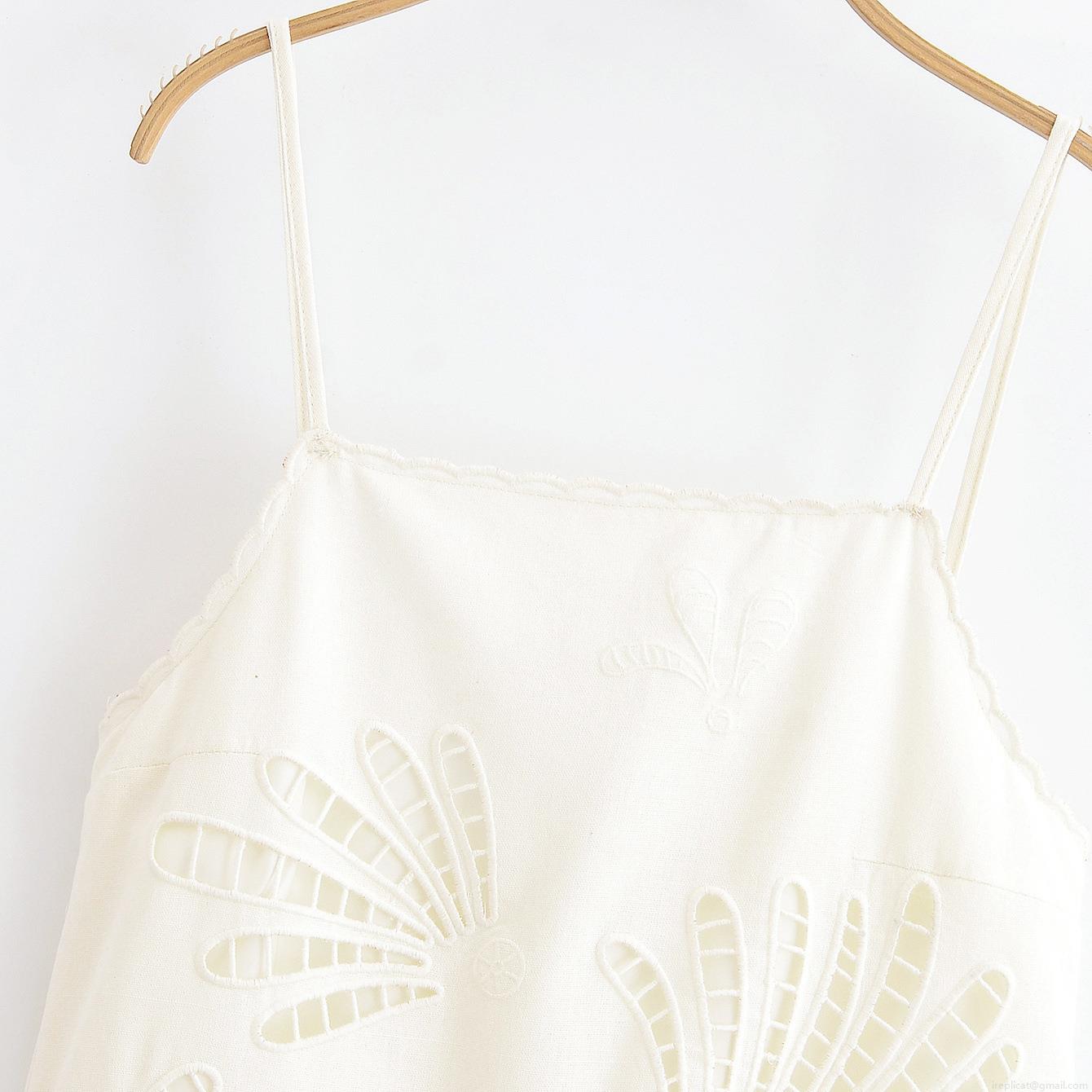 • Women's Sexy Hollow Out Embroidery Cami Dress Summer V-Neck High Waist A-Line Mini Sling Dress Fashion Cream White Sleeveless Party Dress