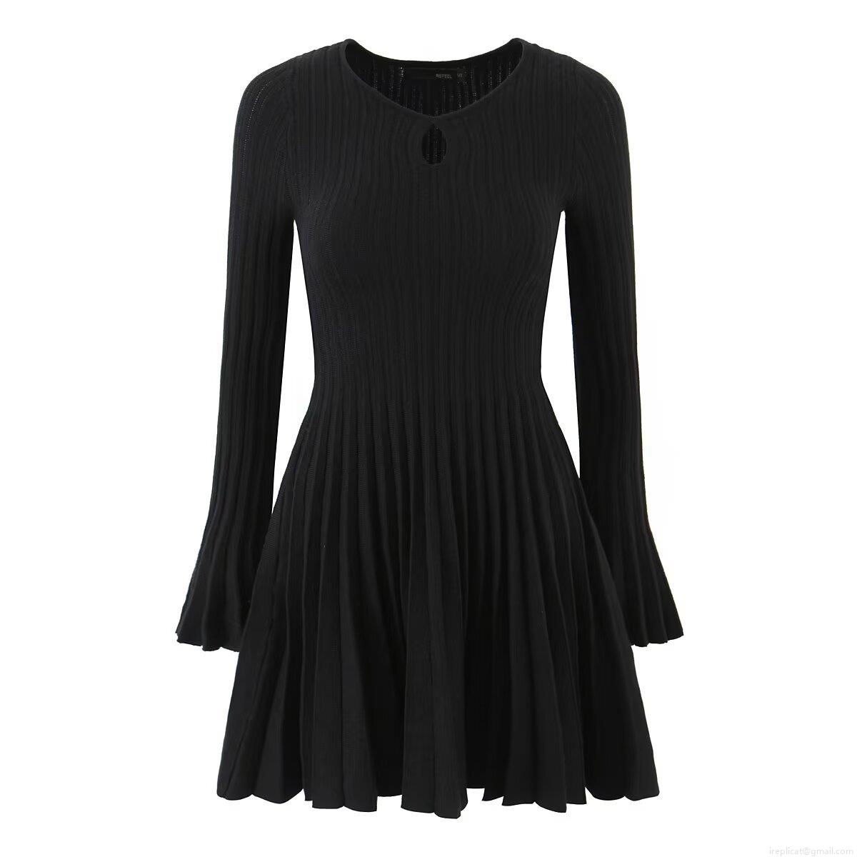 • Women's Sexy Hollow Out Knitted Mini Dress Long Flare Sleeve Round Neck Pleated A-Line Sweater Dress Elegant Slim Fit Ribbed Knit Short Dresses For Party Streetwear Autumn