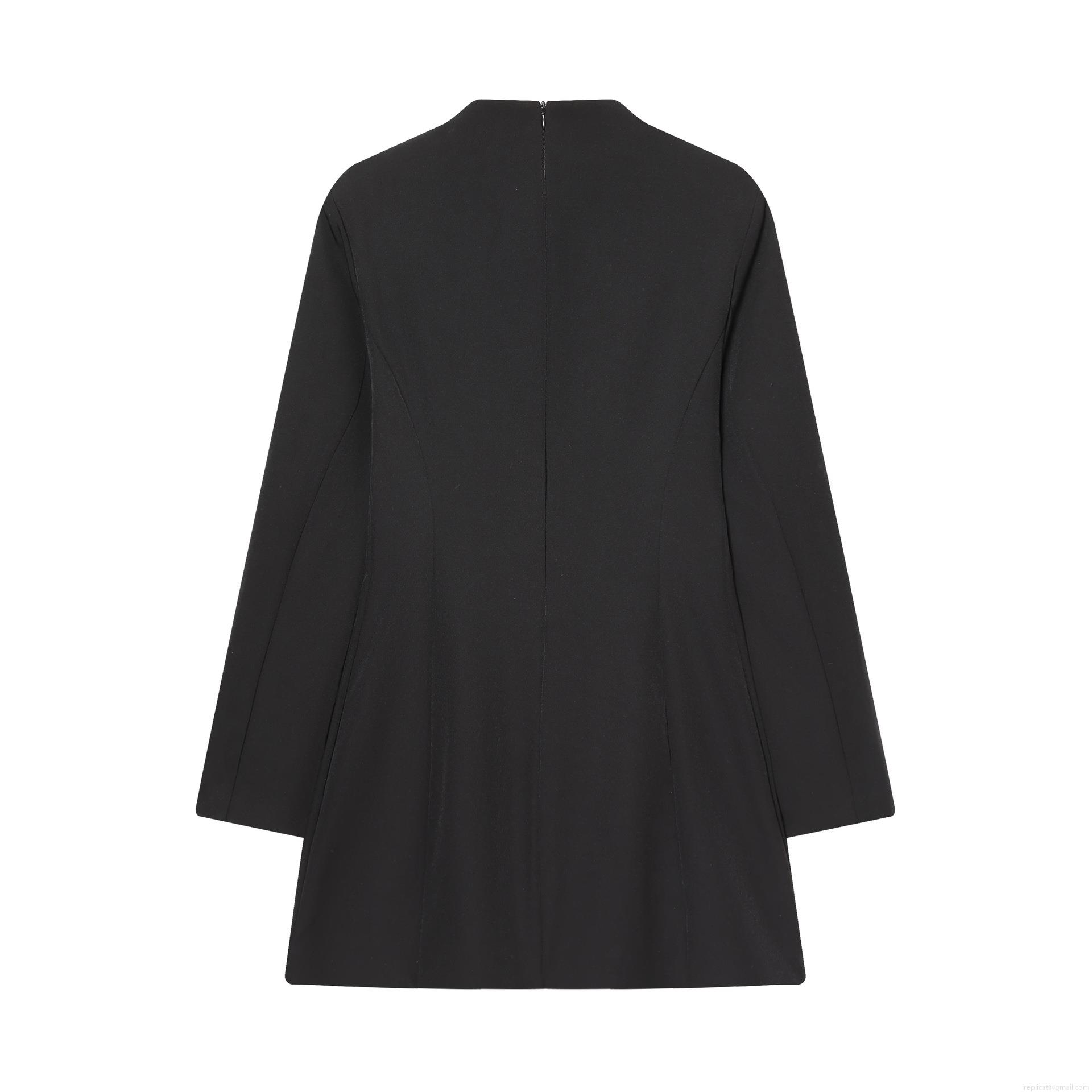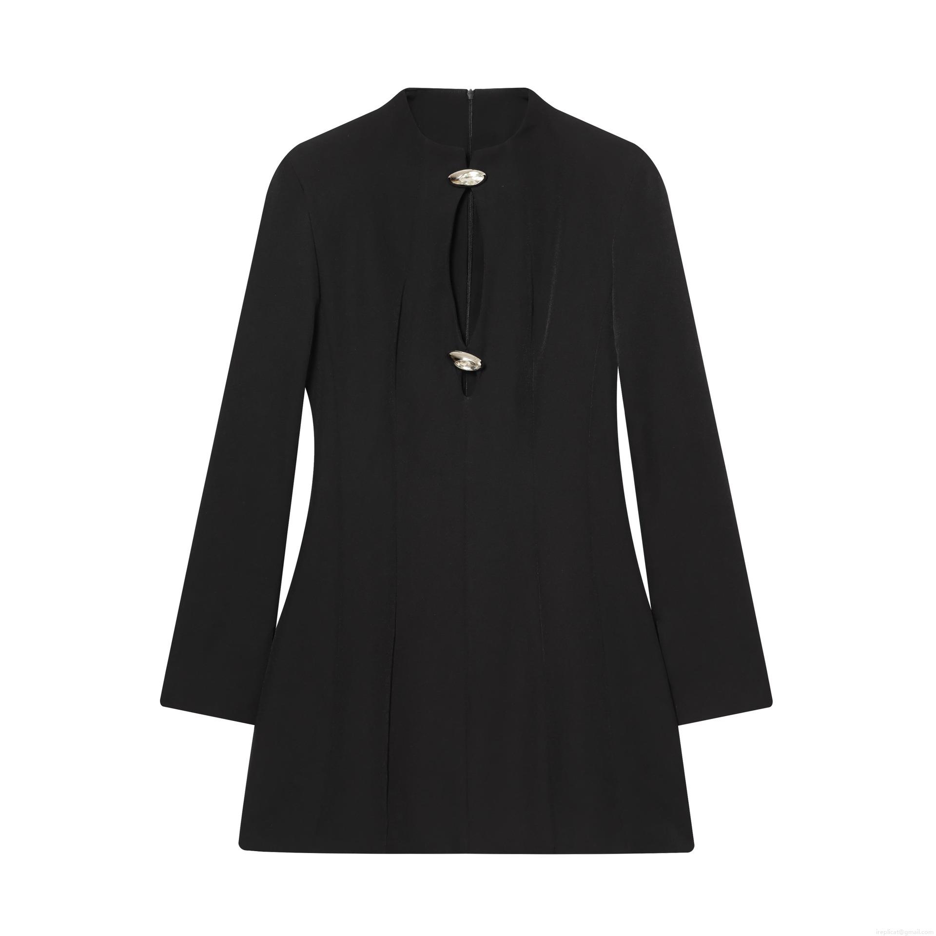 • Women's Sexy Hollow Out V Neck Long Sleeve Mini Dress Slim Fit Bodycon Party Clubwear With Metal Buckle Polyester Solid Color Elegant Evening Dress