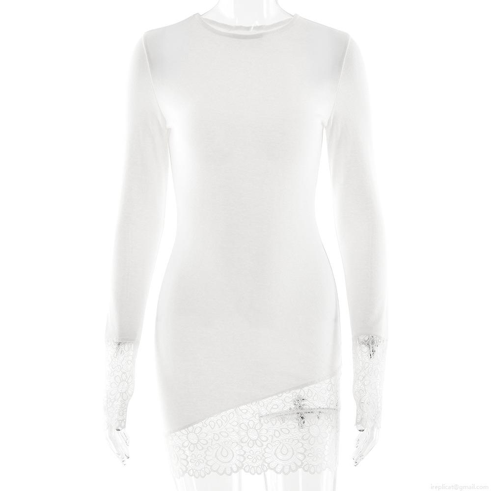 • Women's Sexy Knit Mini Dress Lace Patchwork Long Sleeve Round Neck Slim Fit Bodycon Pencil Dress For Autumn Winter Solid Color Elegant Stitched Short Dress