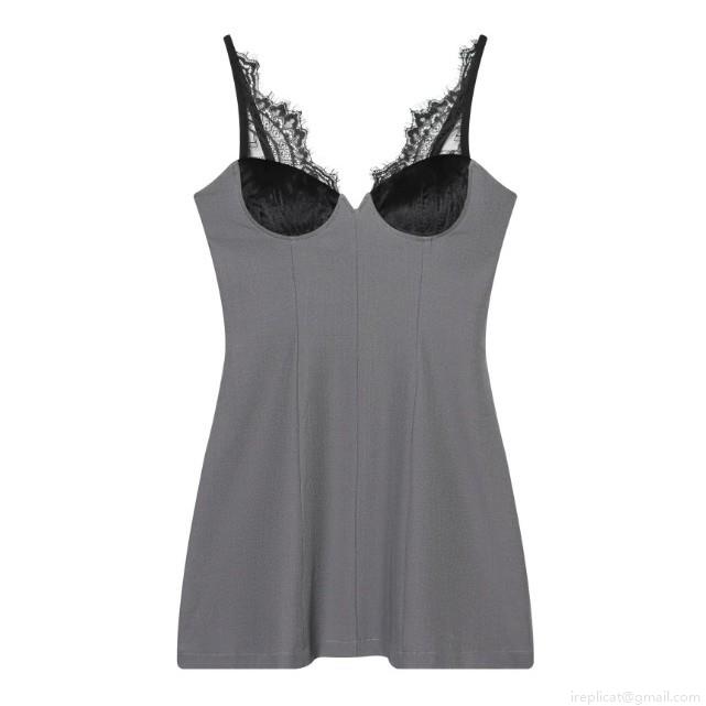 • Women's Sexy Lace Patchwork Sling Dress Contrast Color V-Neck Slim Fit Mini Dress Socialite Style Sleeveless Bodycon Party Dress