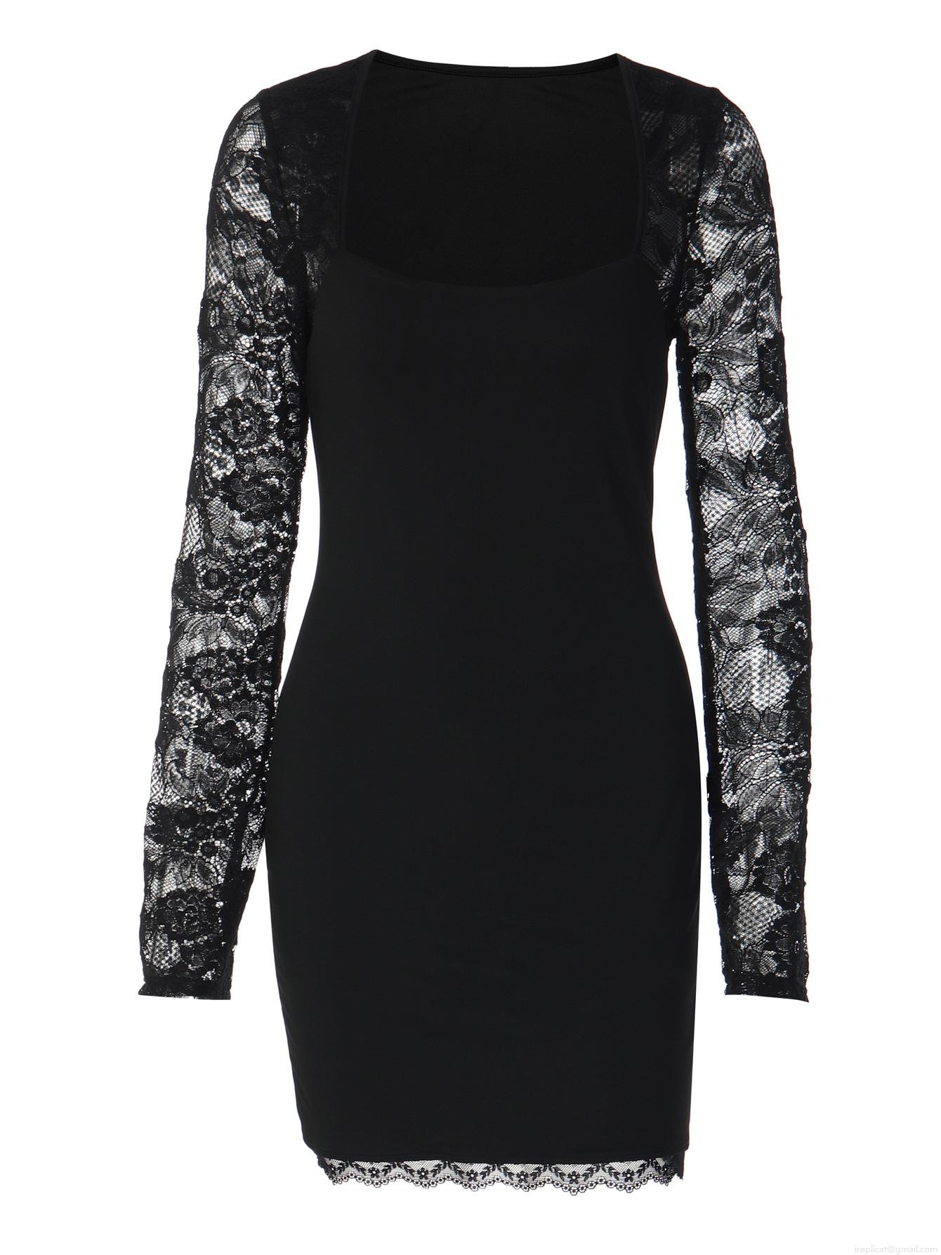 • Women's Sexy Lace Splicing Bodycon Mini Dress Square Neck Long Sleeve Polyester Spandex Slim Fit Party Evening Club Dresses