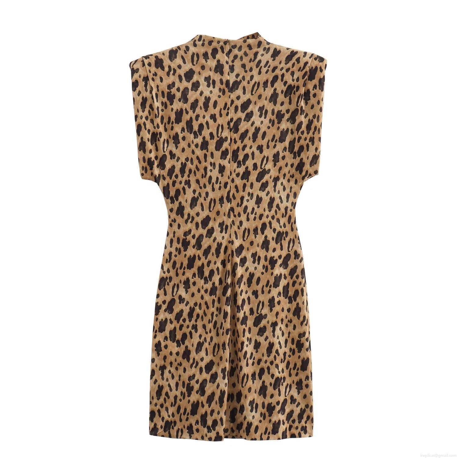 Leopard Print, Animal Print, Printing, Hip Wrap, Invisible Zipper, Sleeveless Shoulder Pads